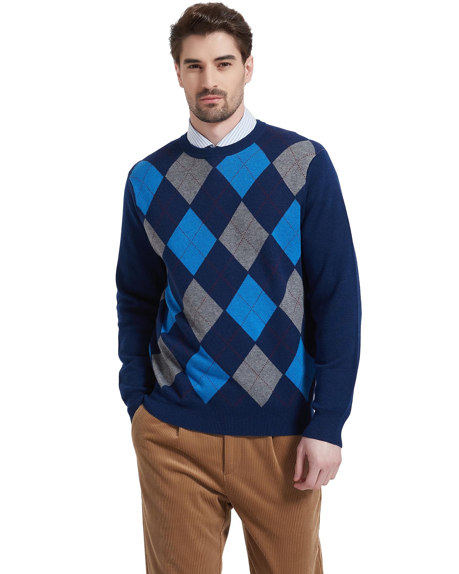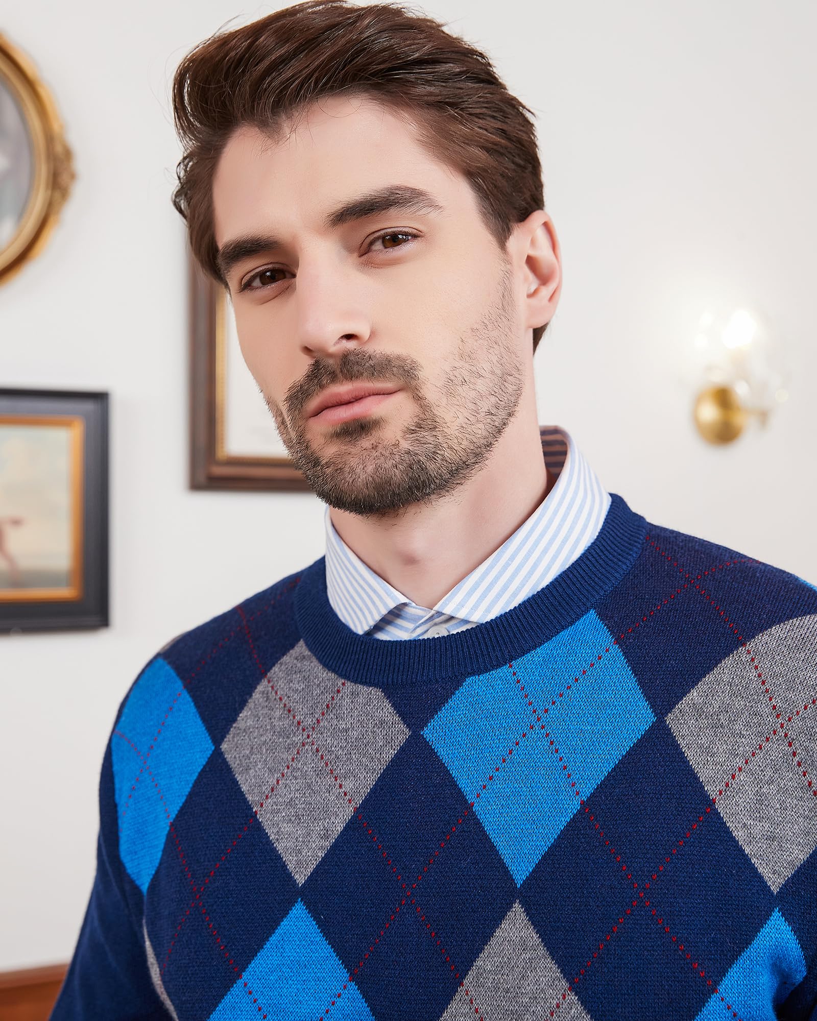 - Stylish Argyle Design: The men's crew neck sweater features a classic argyle pattern, bringing a vintage style and smart appearance to your winter wardrobe. Great birthday, holiday presents for husband, families, friends.