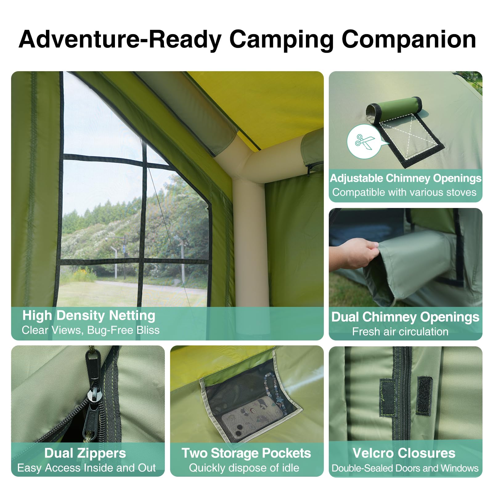 - Dual-layer Windows and Exquisite Zipper: Designed with Dual-layer Windows and Doors, allowing you to enjoy fresh air while maintaining your personal space. Large inflatable house tent enhanced durability with dual zippers and extra adhesive