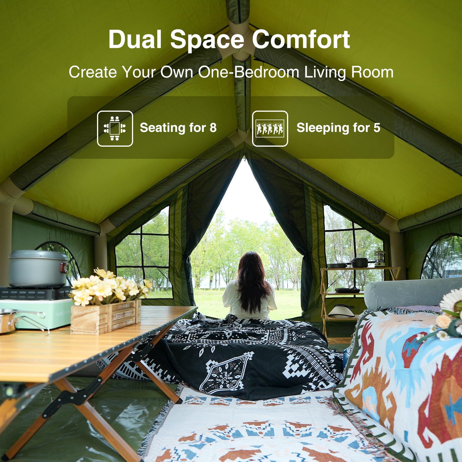 - Enjoy Sustainable Camping for 2 Weeks: KNUO inflatable tent robust air beams ensure unmatched stability for up to 14 days without leakage, while offering a 4~8 people spacious and versatile interior, suitable to use in all climates/seasons