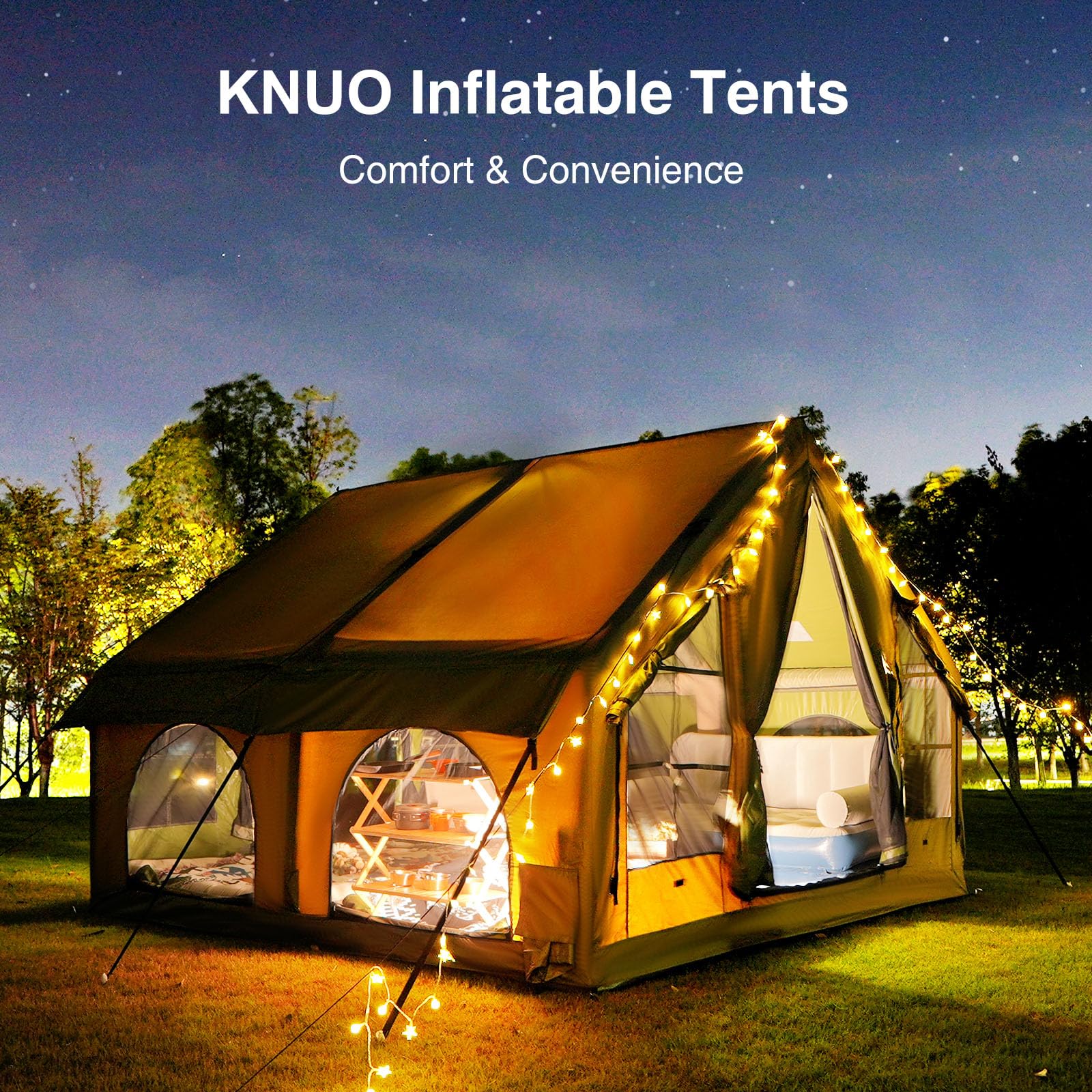 KNUO 2025 Upgraded Waterproof Inflatable Camping Tent for 5-8 People, Large Blow-Up Air Tent, No Assembly Needed Luxury Glamping House, 10x10ft Oxford Fabric