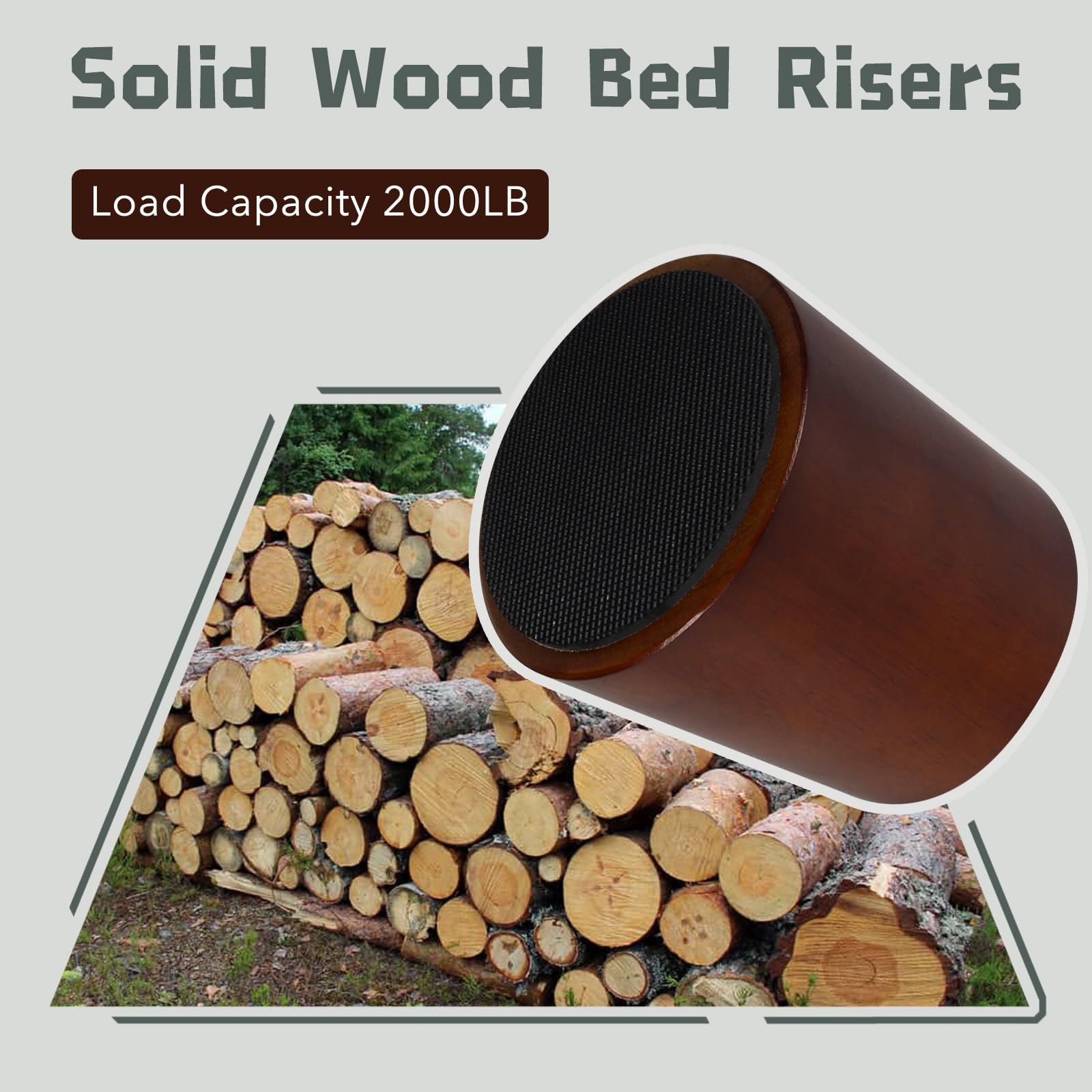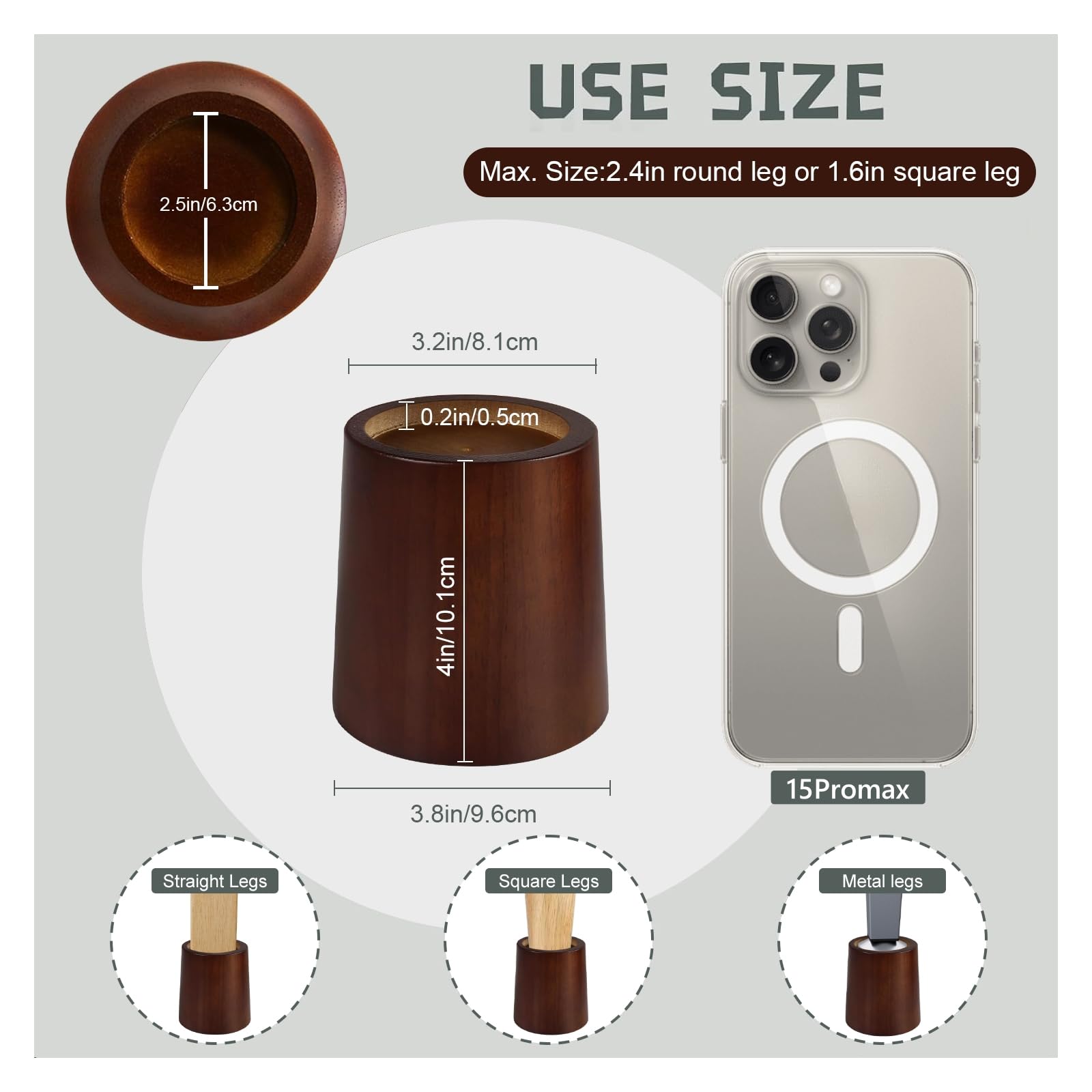 - 【Beautiful】- Bed raisers High: 4 in/10.16 cm, top diameter: 3.1 in/7.87 cm, base diameter:3.8 in/9.65 cm. Eco-friendly walnut color, it is smooth and shiny, and decorates your room with a beautiful and unique mid century modern style