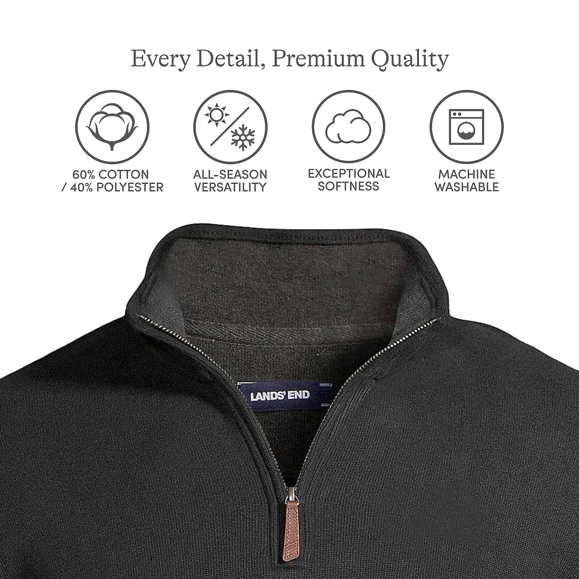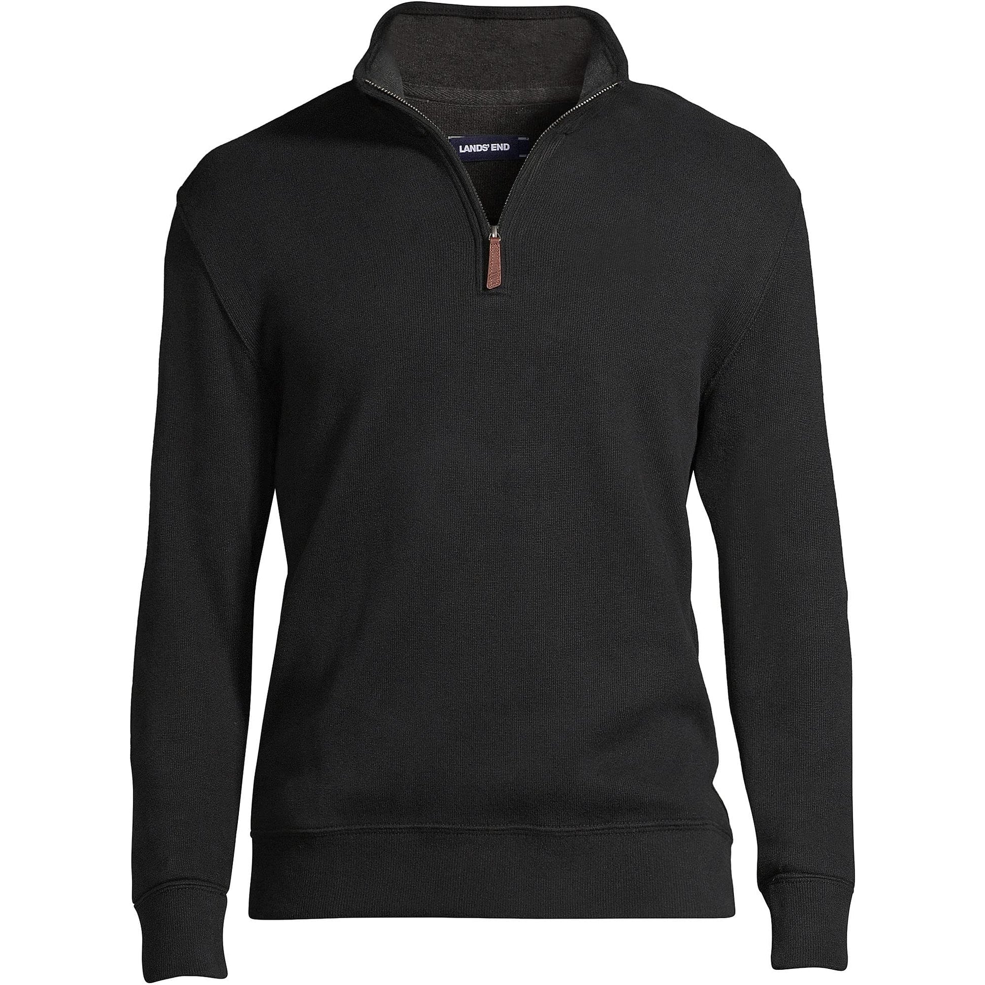 Lands' End Mens Bedford Rib Quarter Zip Sweater Black Tall X-Large