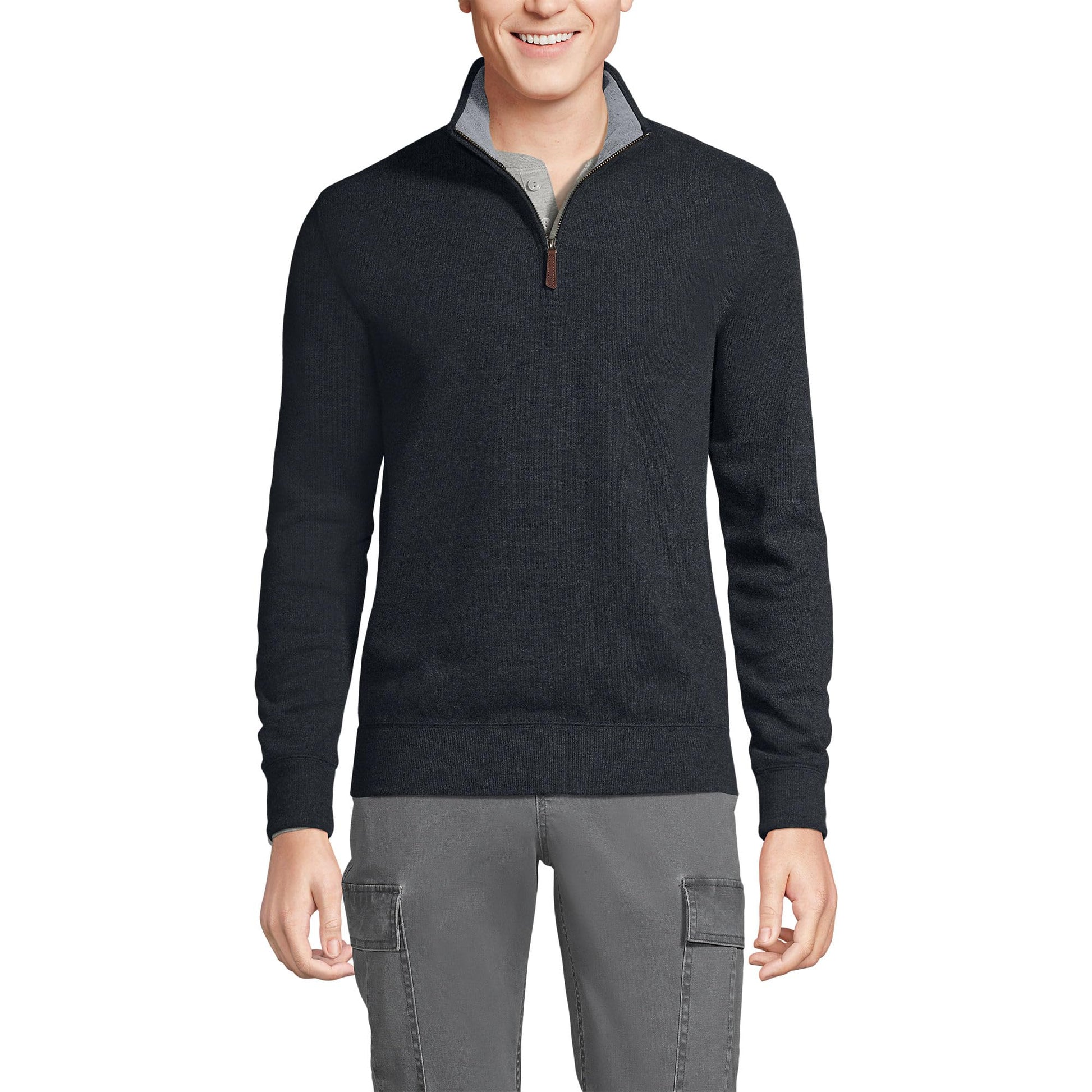 Lands' End Mens Bedford Rib Quarter Zip Sweater Dark Charcoal Heather Tall X-Large