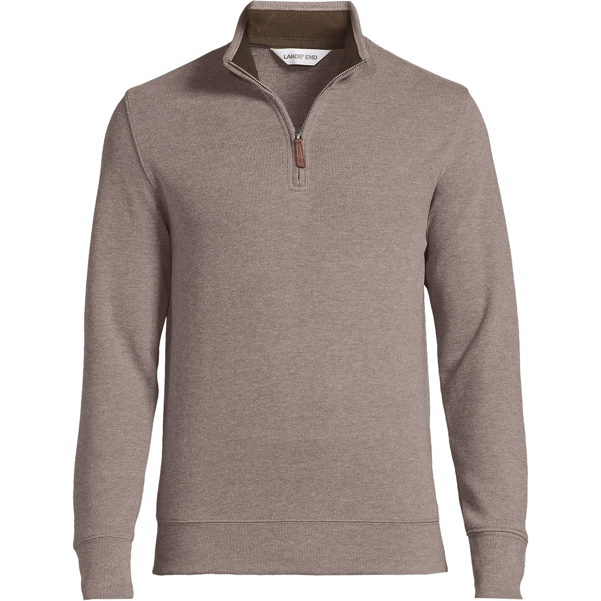 Lands' End Mens Bedford Rib Quarter Zip Sweater Light Bark Heather Tall Medium