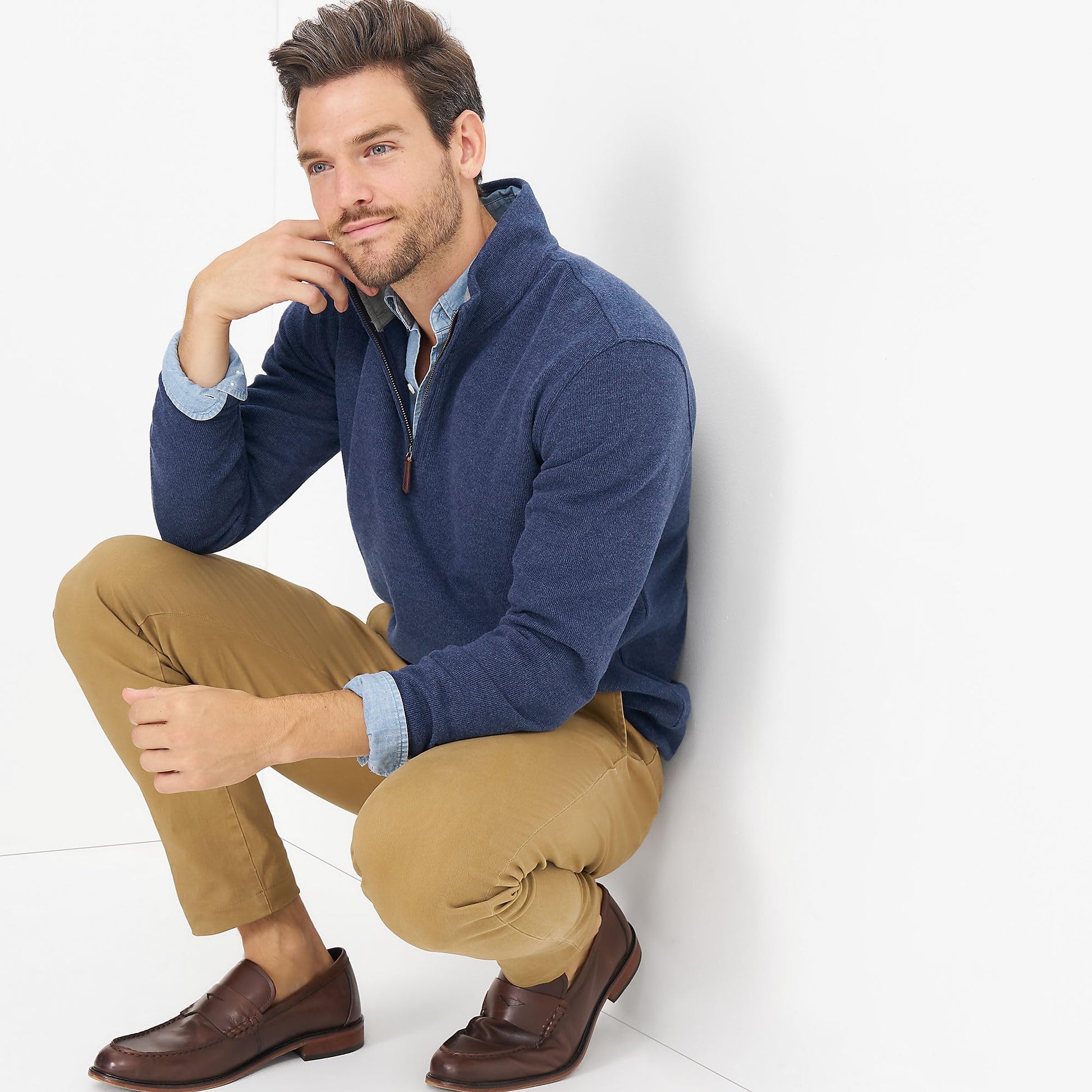 - Refined Fit: Traditional fit offers room to move while maintaining a tailored look; relaxed through the shoulders and body for easy layering; ideal as a business casual quarter zip or everyday essential