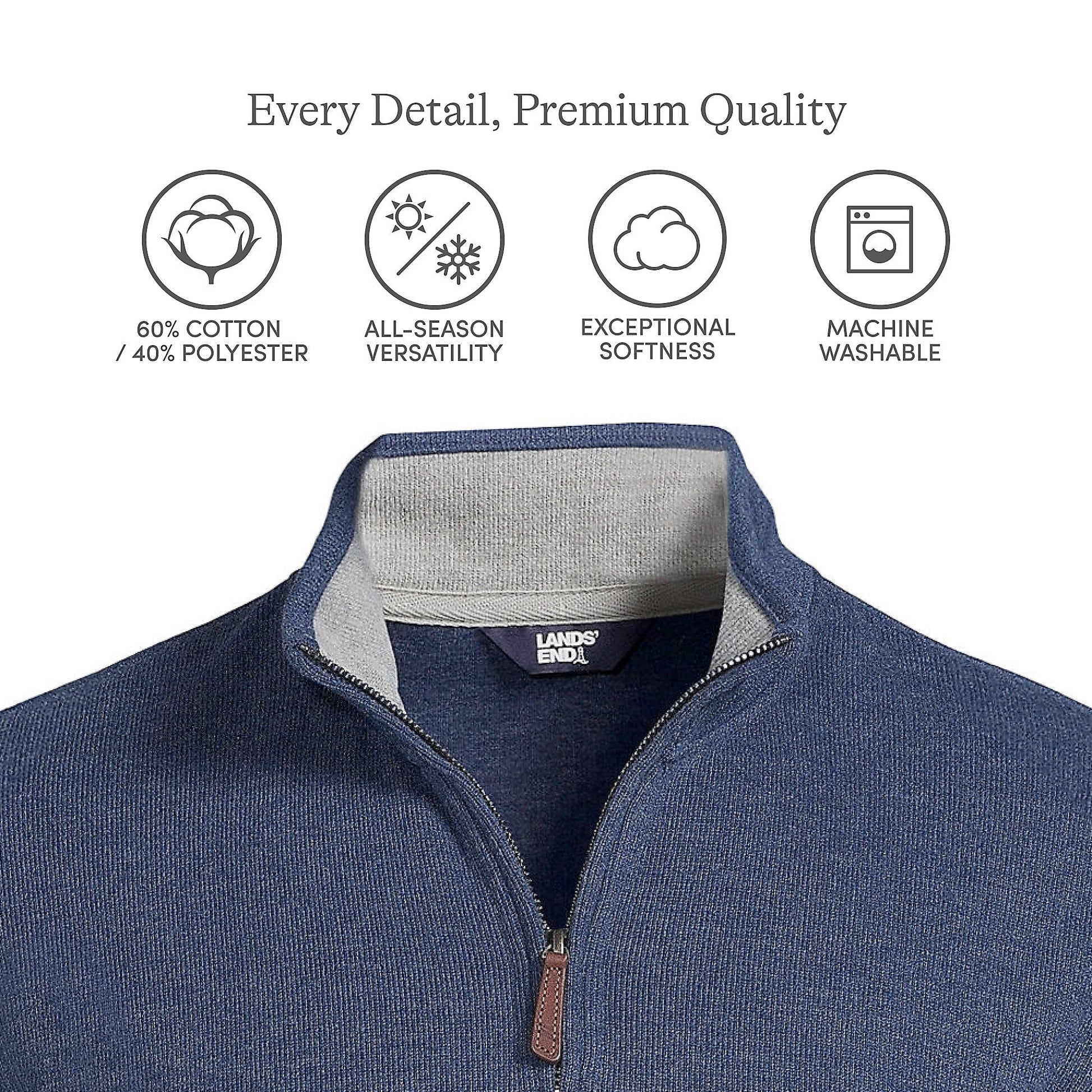 Lands' End Mens Bedford Rib Quarter Zip Sweater Medium Denim Heather Tall Medium