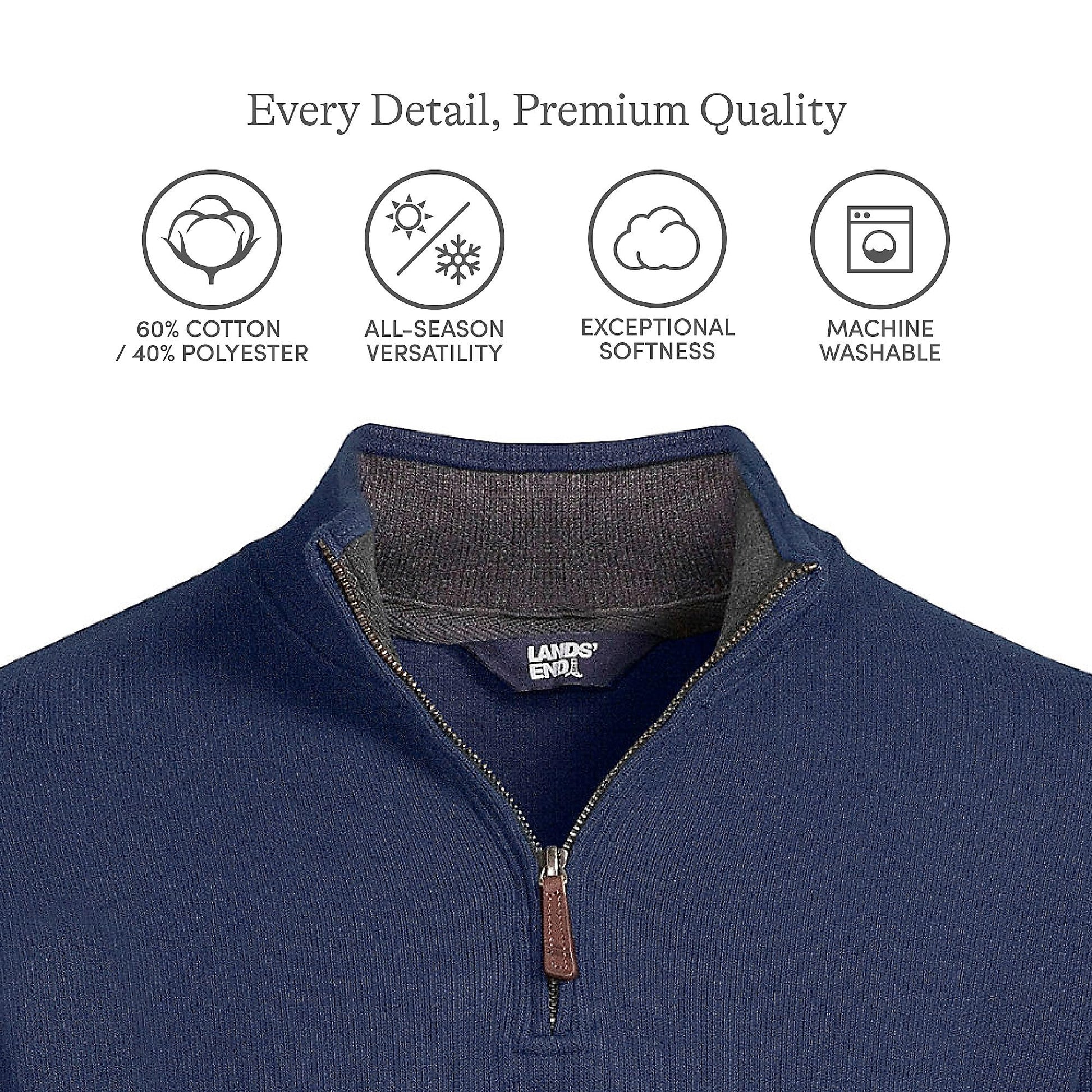 Lands' End Mens Bedford Rib Quarter Zip Sweater Radiant Navy Tall Medium