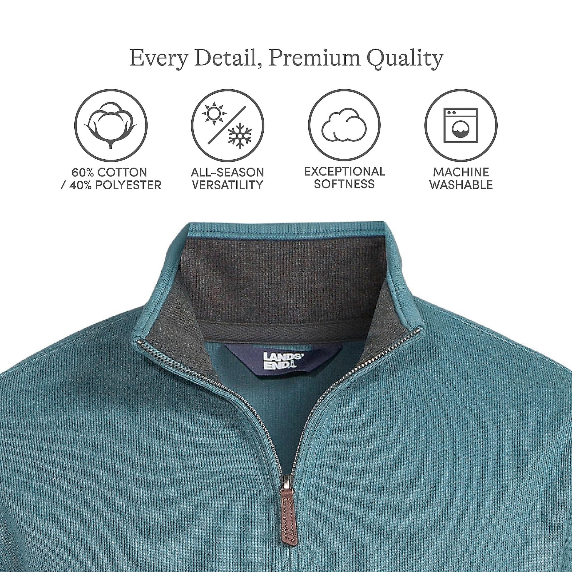 Lands' End Mens Bedford Rib Quarter Zip Sweater Rain Storm Blue Tall Large
