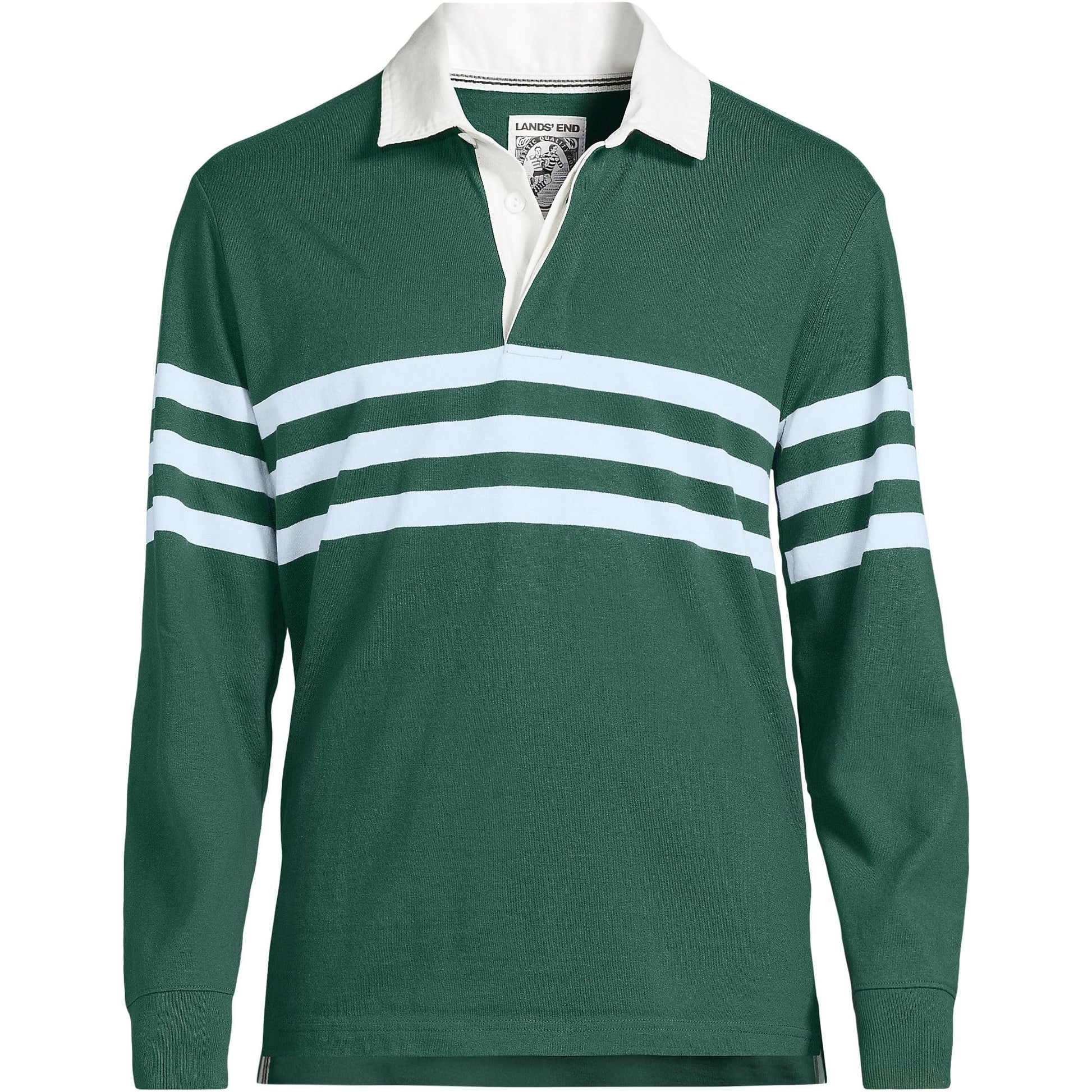 Lands' End Mens Long Sleeve Rugby Polo Shirt Norway Spruce Stripe Tall Large