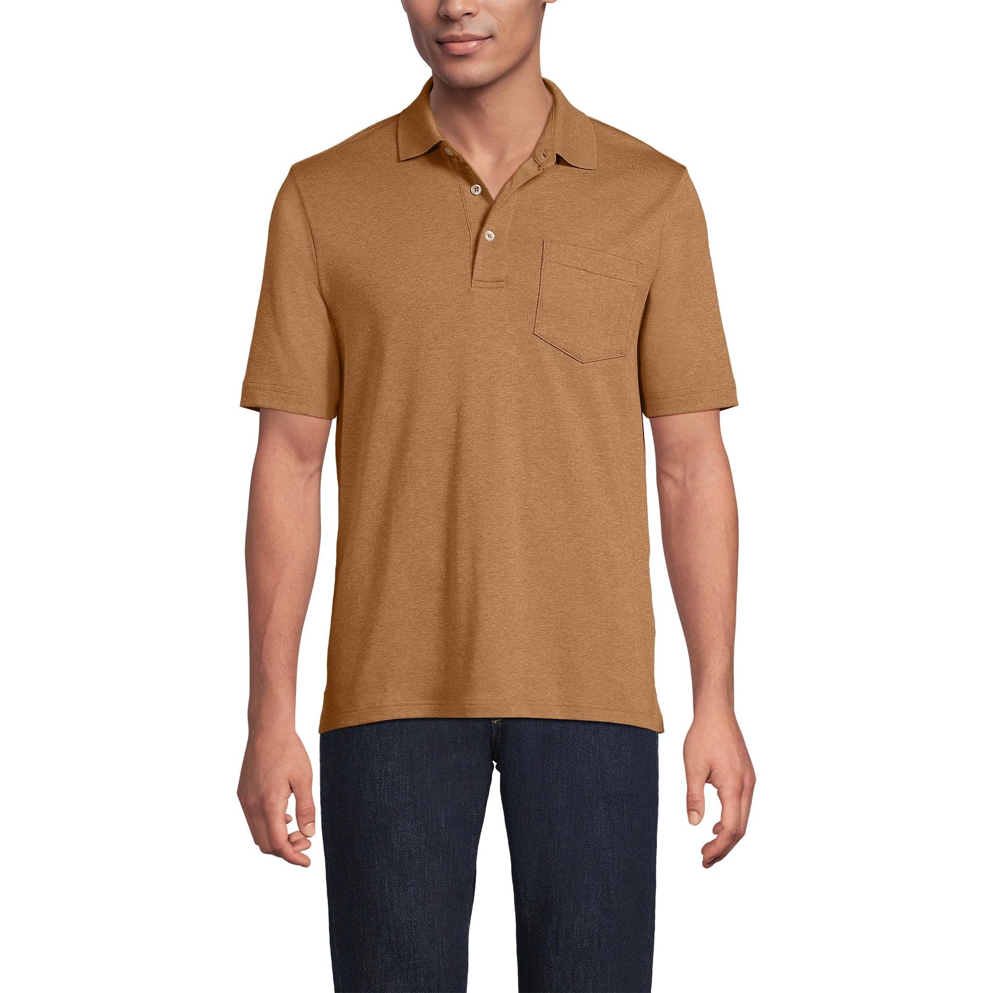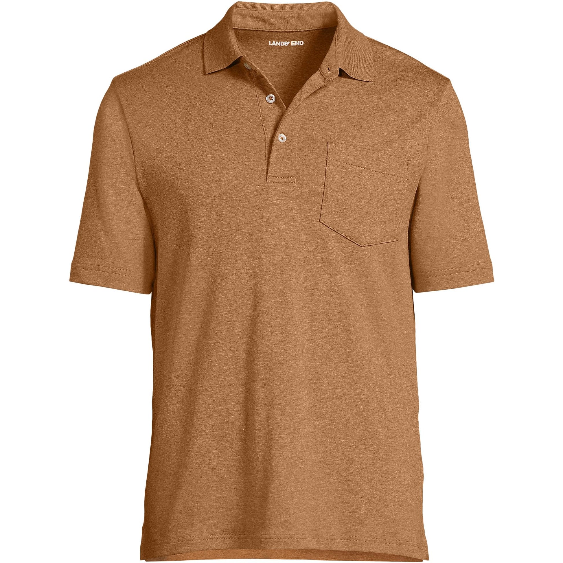 Lands' End Mens Short Sleeve Pocket Supima Polo Canyon Camel Heather Tall X-Large
