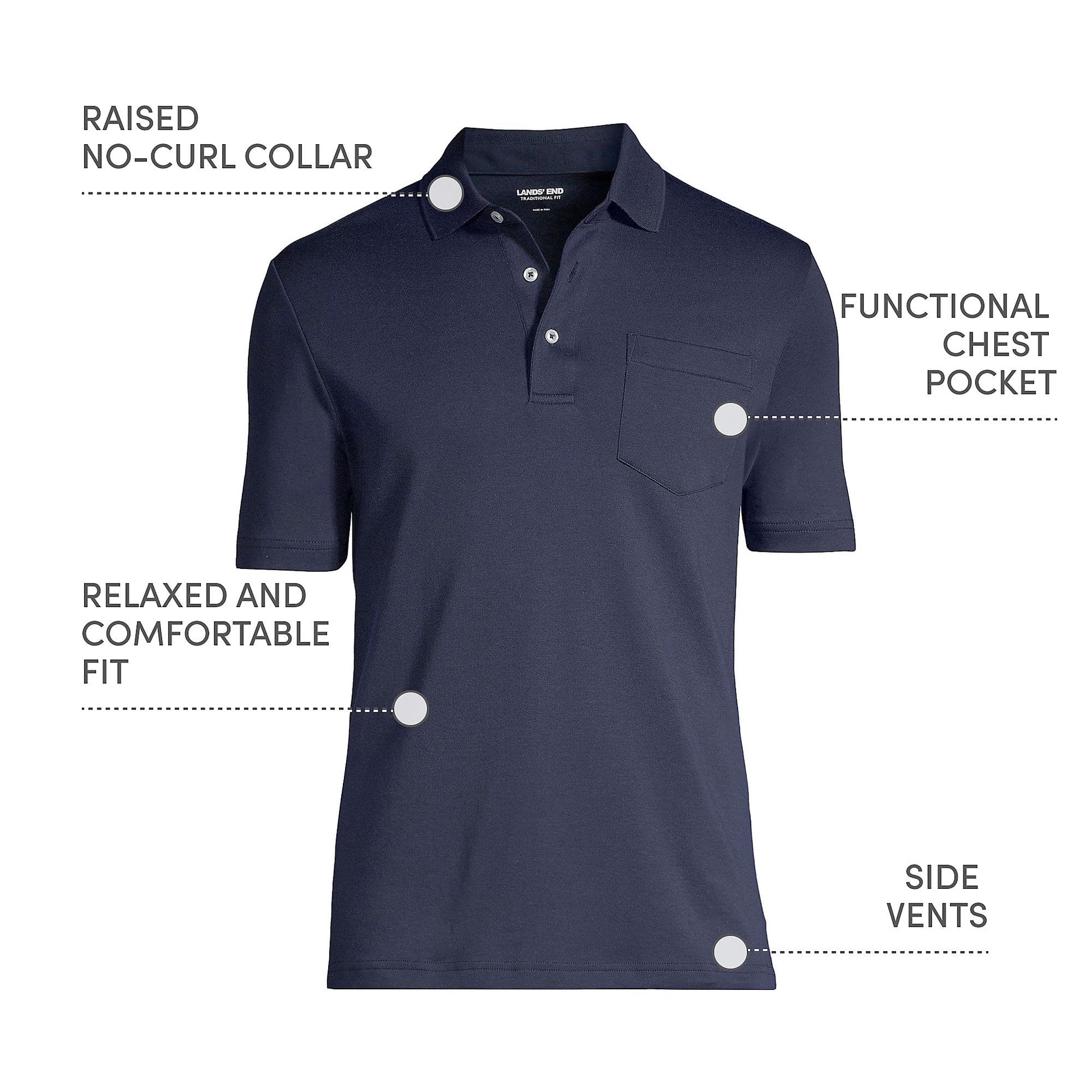 Lands' End Mens Short Sleeve Pocket Supima Polo Radiant Navy Tall XX-Large
