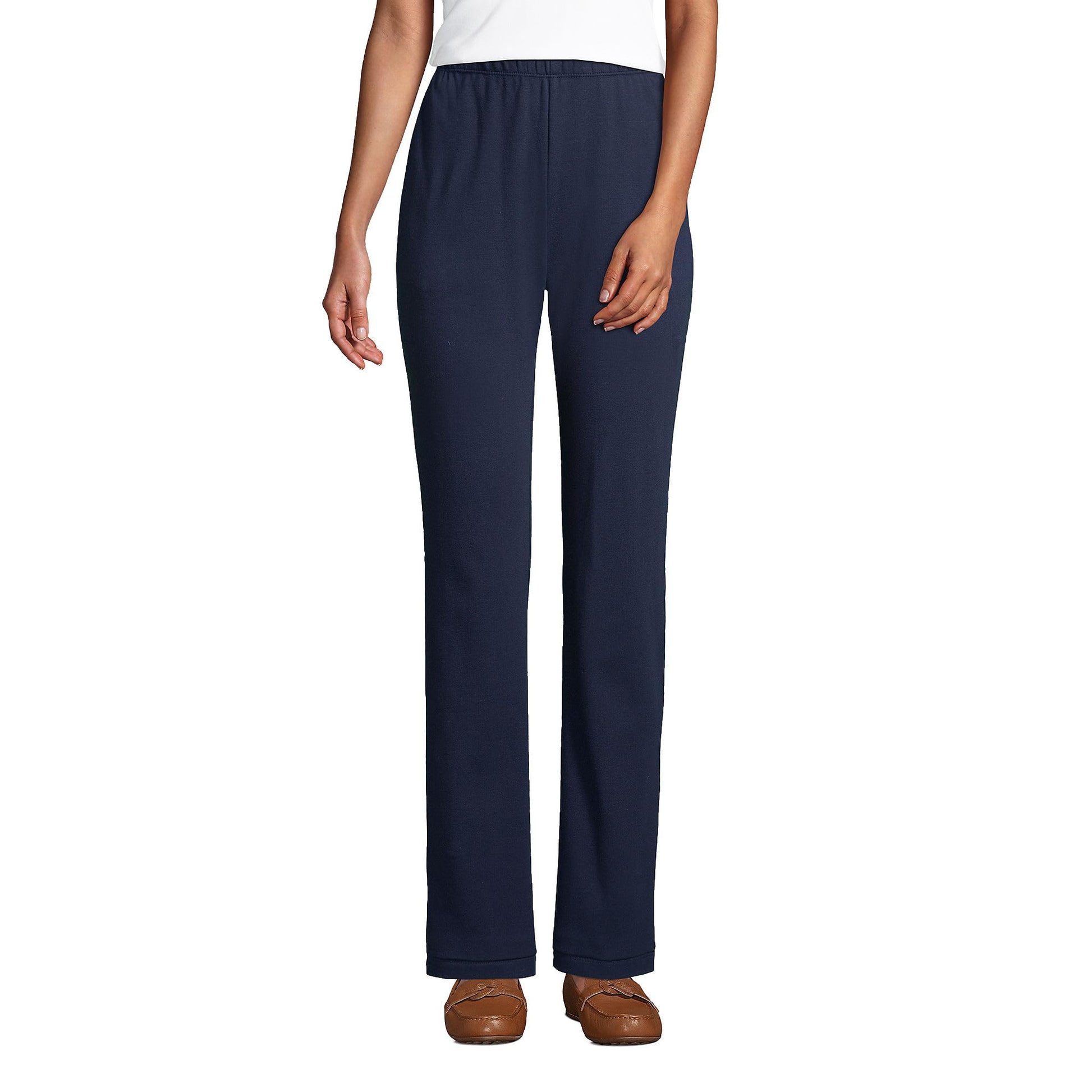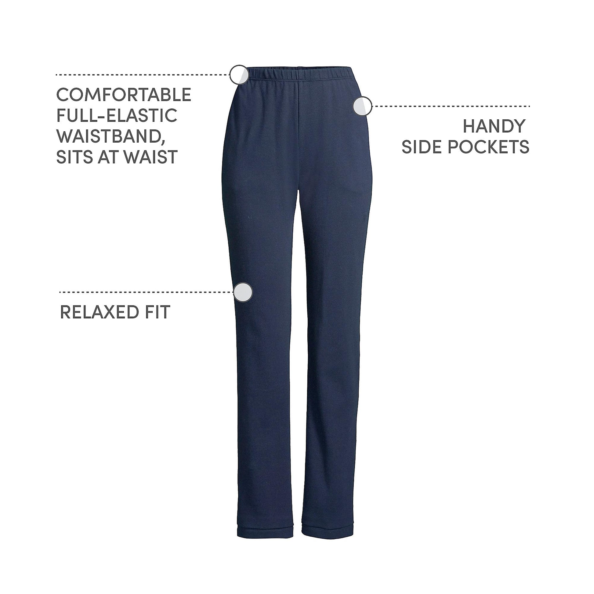 - Pull-On Ease: Wide elastic waistband sits comfortably at your natural waist; pull-on design for a smooth fit with no buttons or snaps; generous cut with open leg for freedom of movement; wrinkle-free knit ideal for travel or exercise