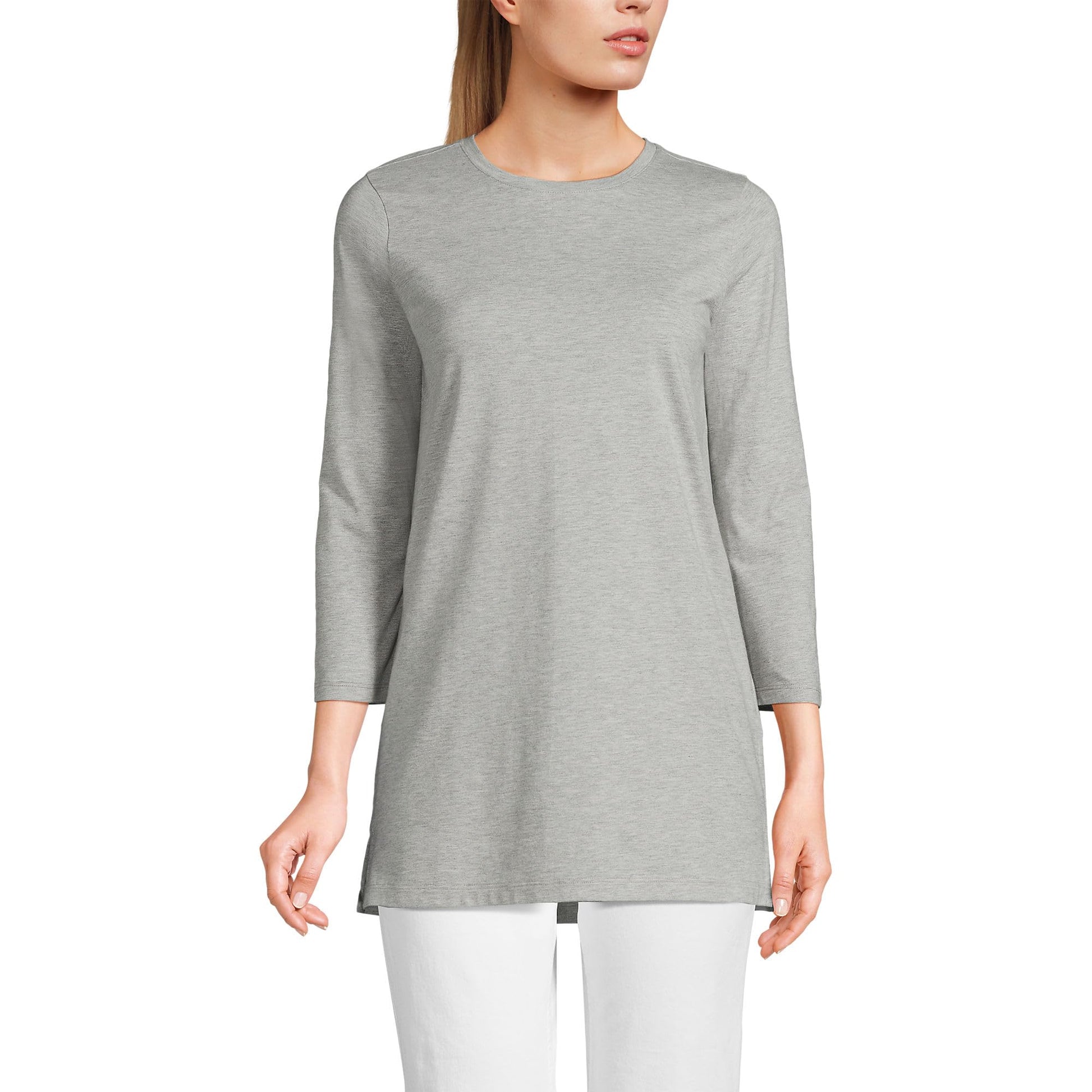 Lands' End Womens 3Q Cotton Supima Crew Neck Tunic Gray Heather Tall X-Large