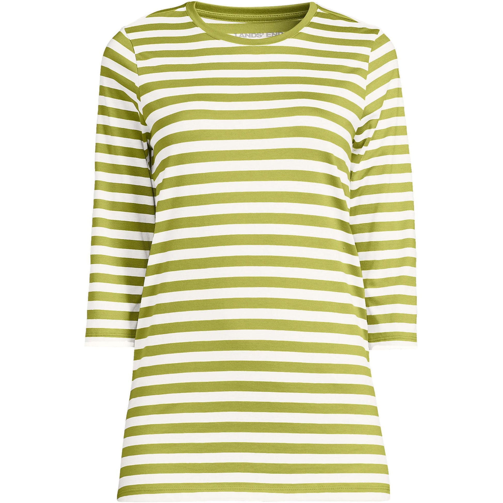 Lands' End Womens 3Q Cotton Supima Crew Neck Tunic Vintage Lime Even Stripe Tall Large
