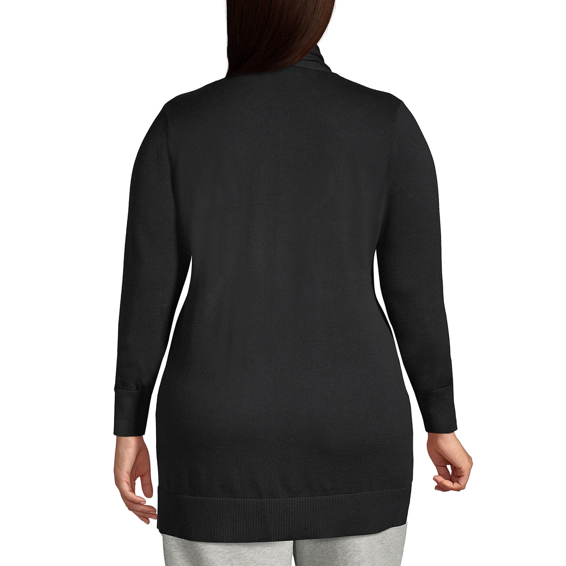 Lands' End Womens Cotton Long Sleeve Open Cardigan Sweater Black Tall Large