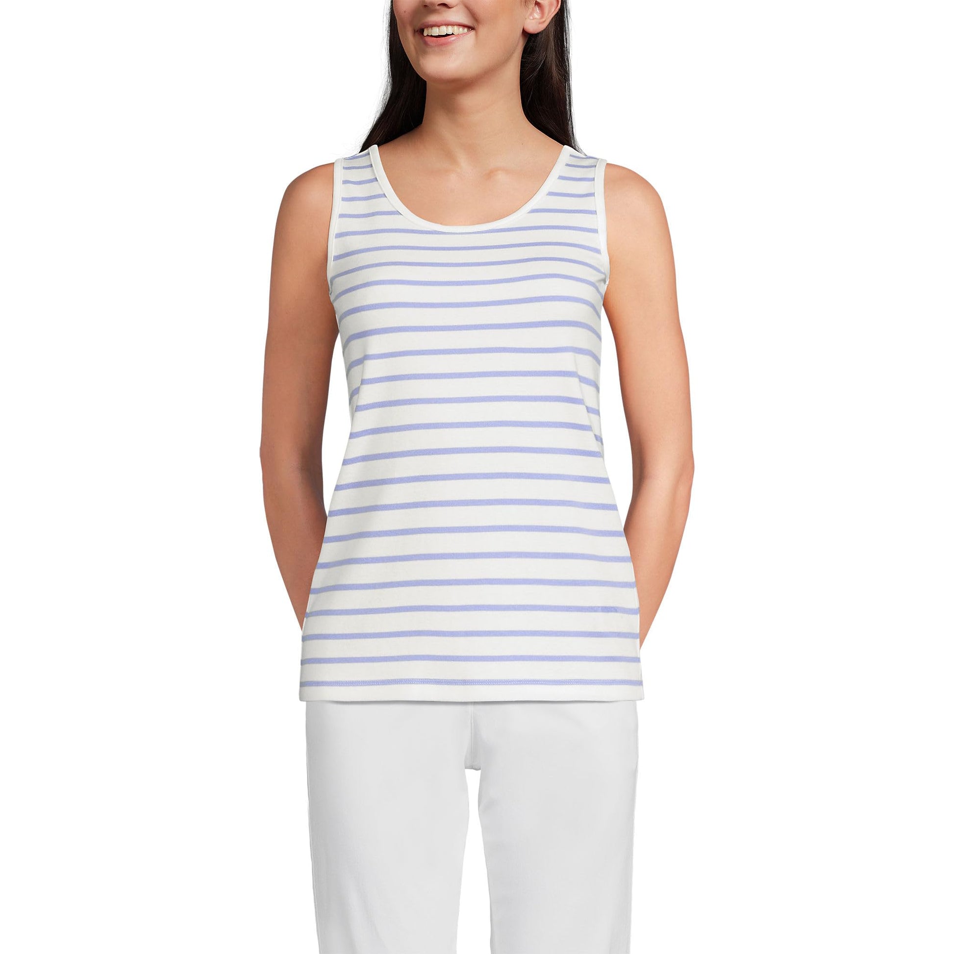 Lands' End Womens Cotton Tank Top Ivory/Periwinkle Breton Stripe Tall Large