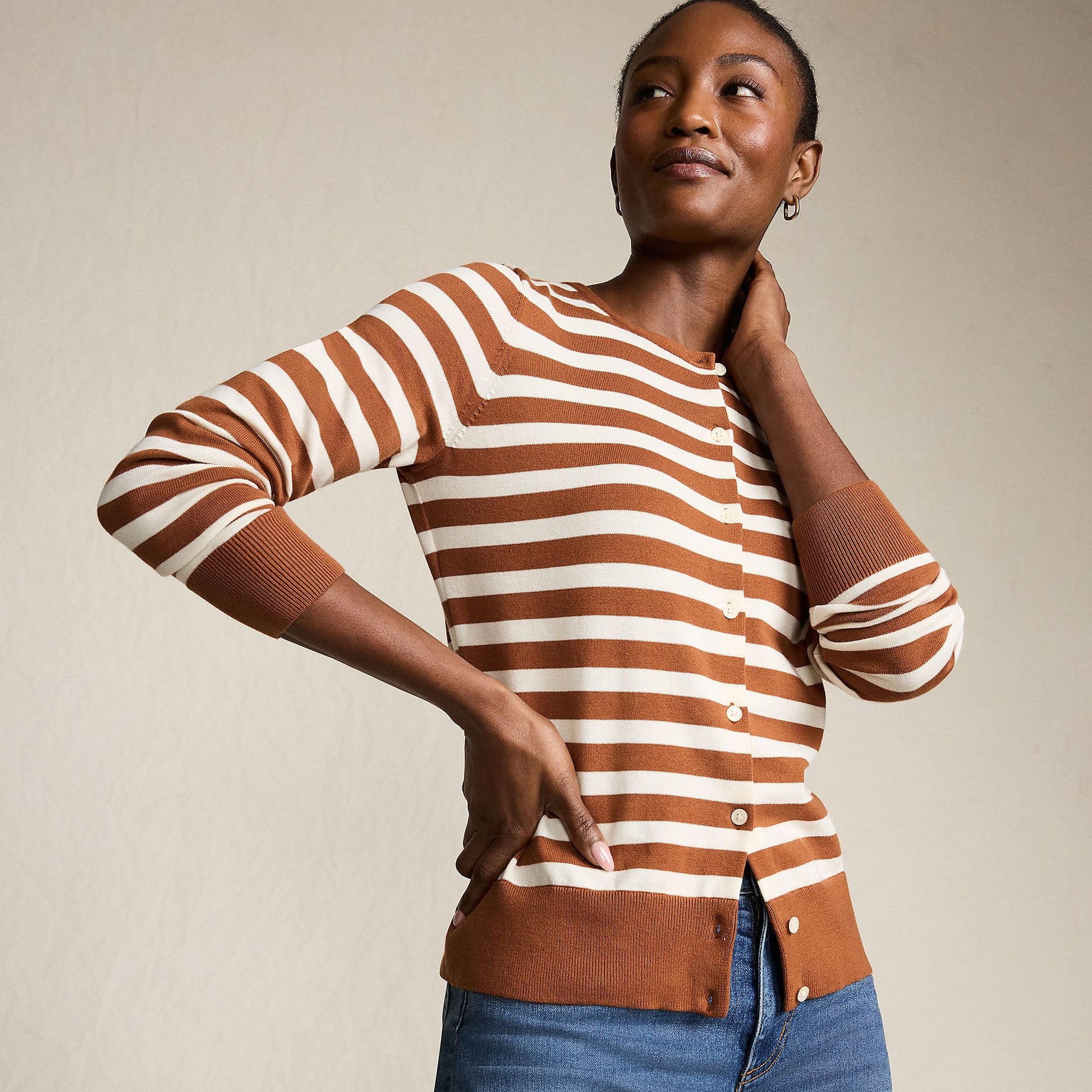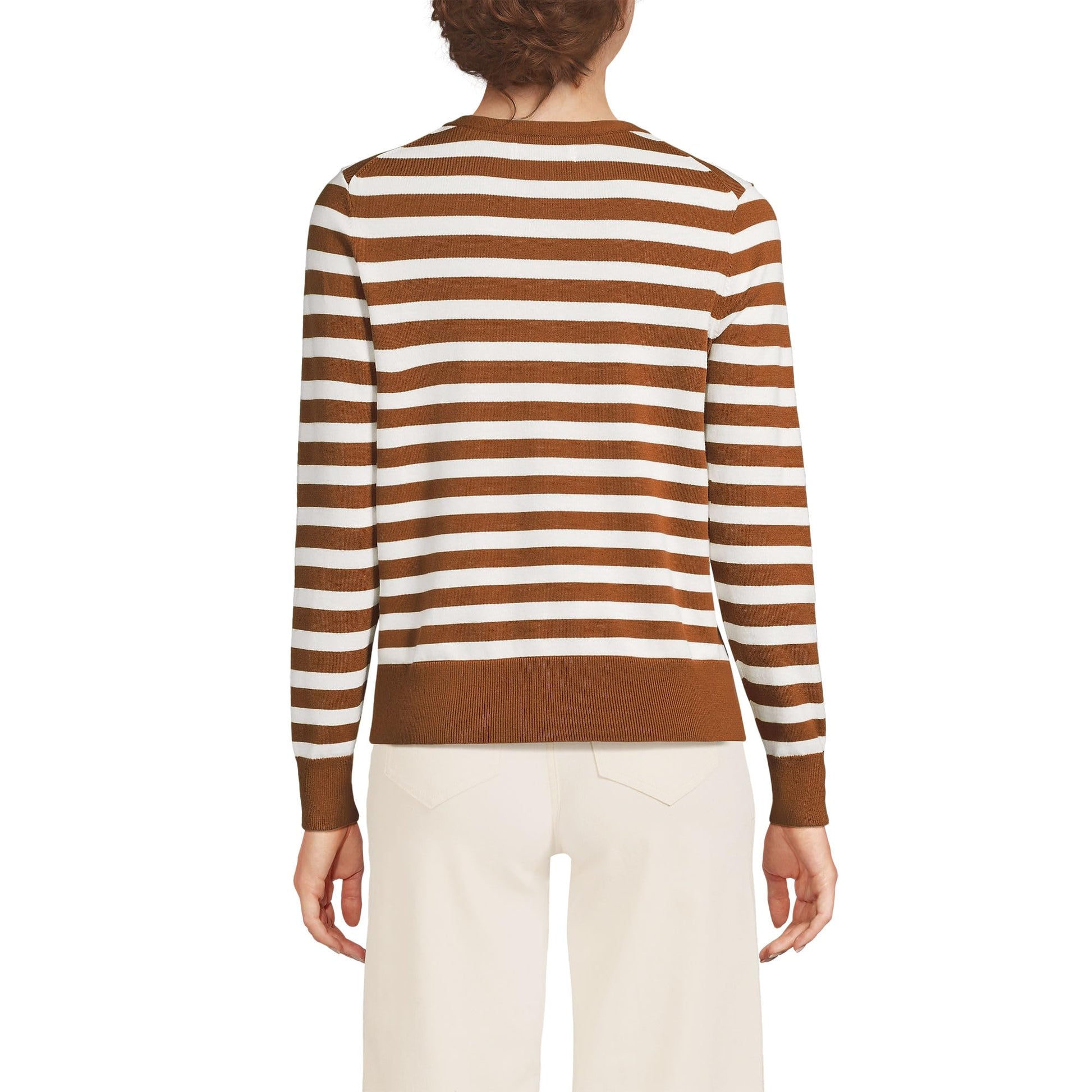 Lands' End Womens FG Cotton Cardigan Sweater Rich Ginger/Fresh Ivory Tall Medium