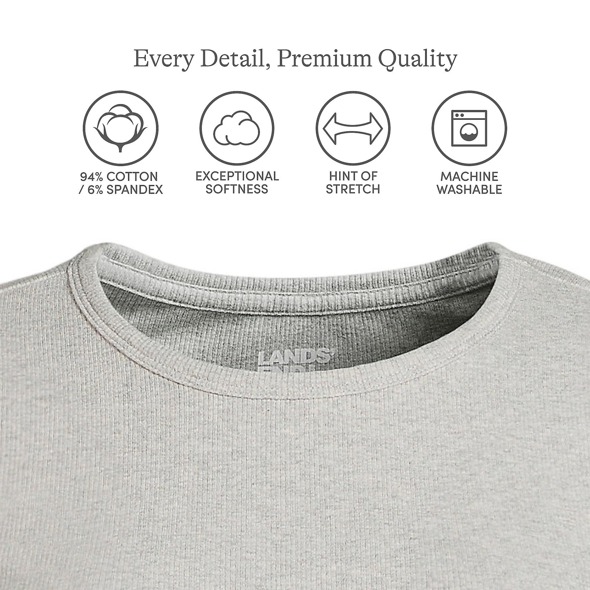Lands' End Womens Long Sleeve Micro Rib Crew Gray Heather Tall X-Large