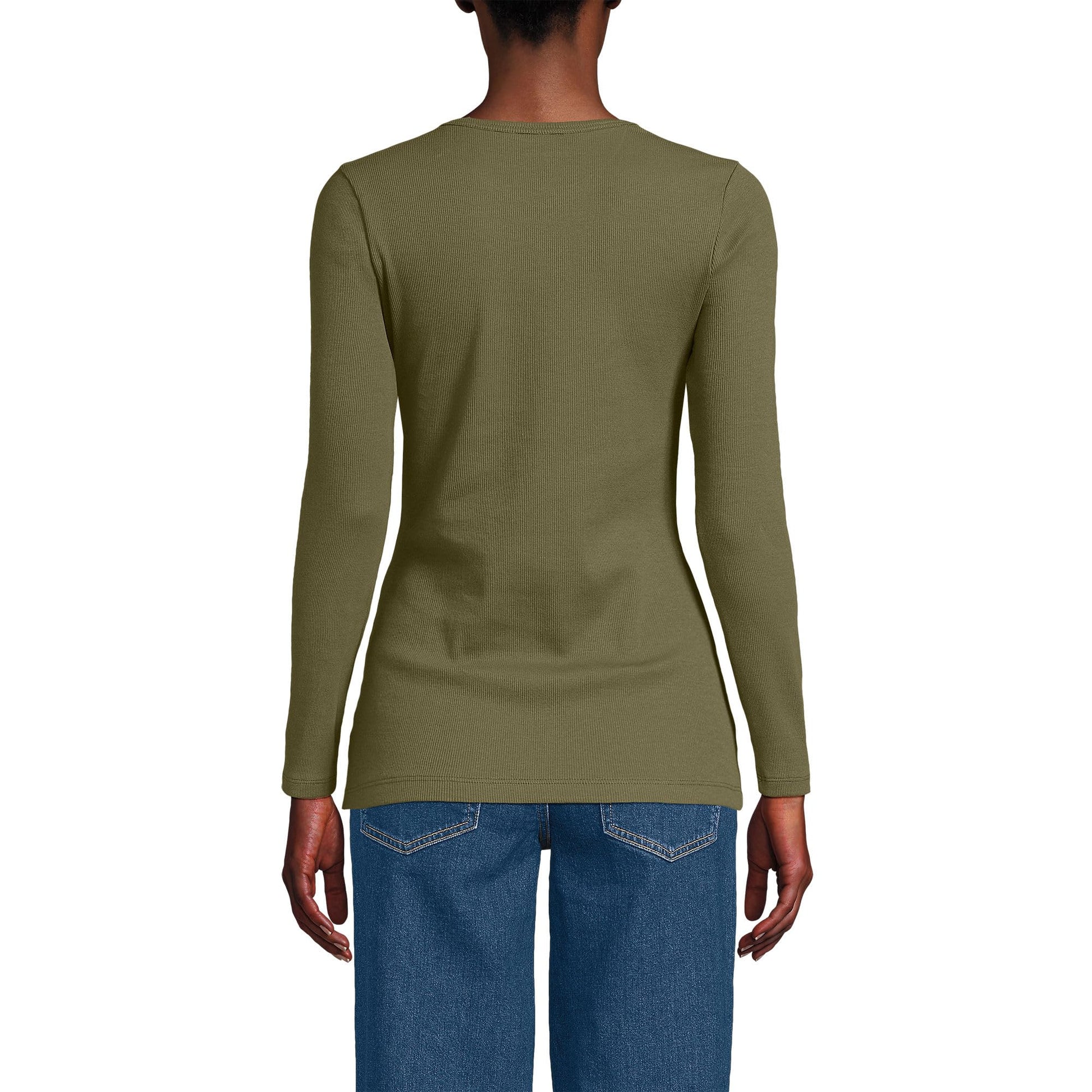 Lands' End Womens Long Sleeve Micro Rib Crew Olive Drab Tall X-Large