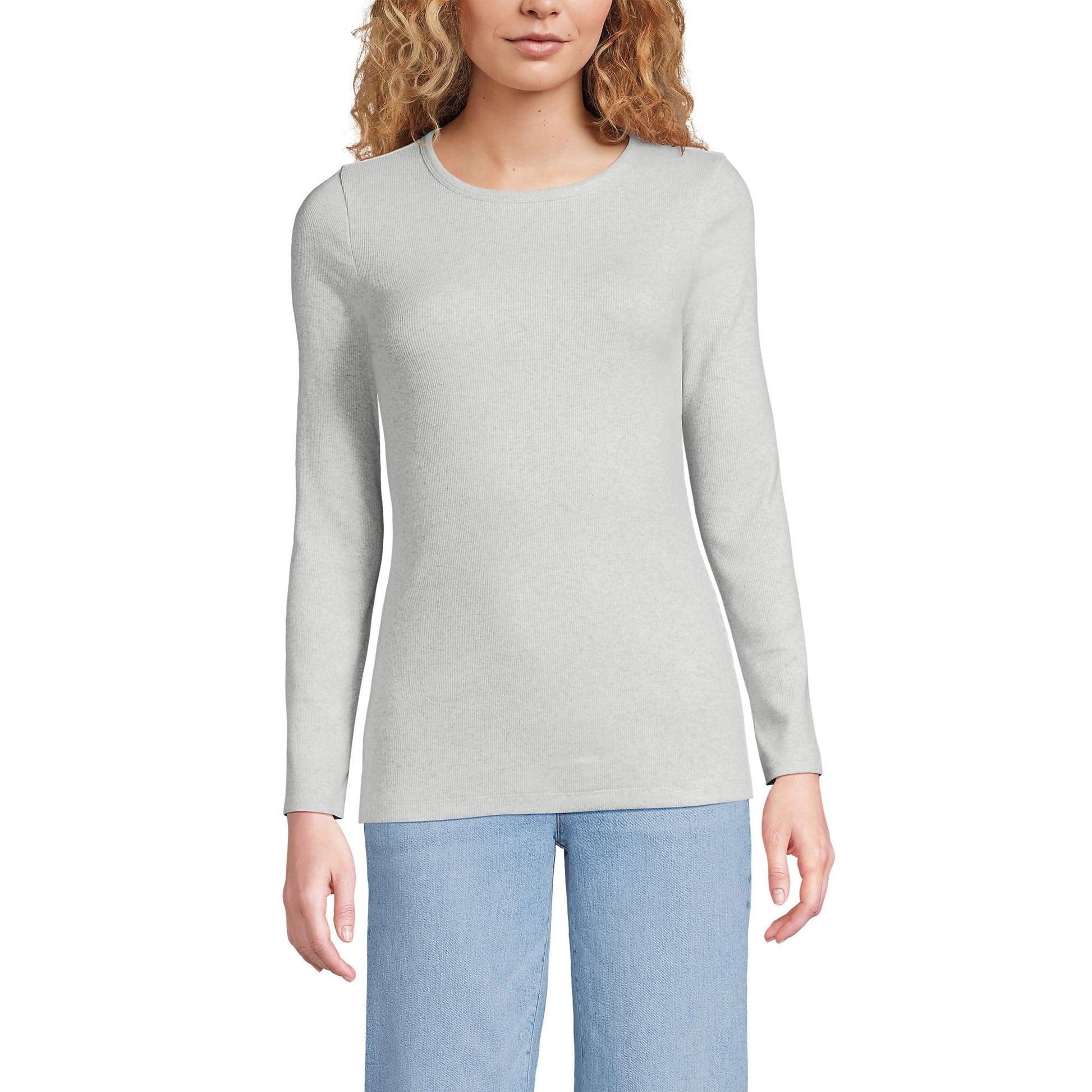 Lands' End Womens Long Sleeve Micro Rib Crew Soft Light Gray Heather Tall Medium
