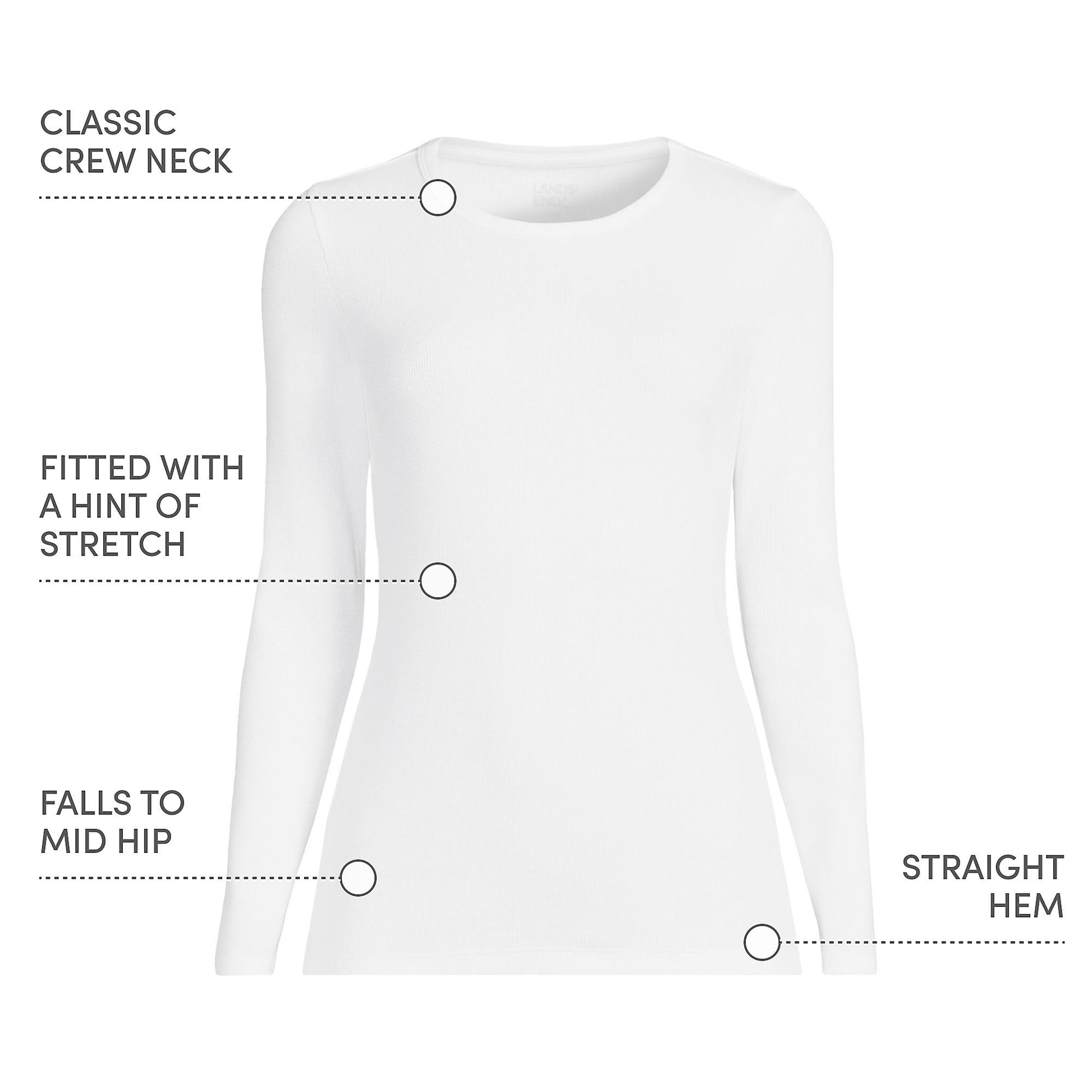 Lands' End Womens Long Sleeve Micro Rib Crew White Tall X-Large