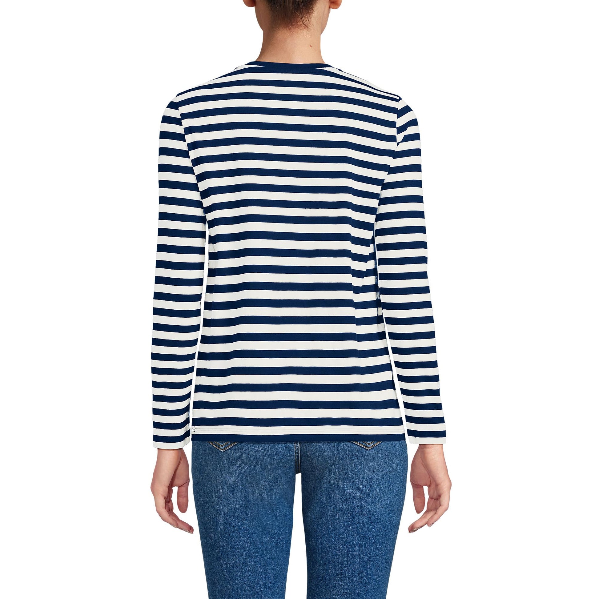 Lands' End Womens Long Sleeve Relaxed Supima Cotton Crew Neck T Shirt Deep Sea Navy Even Stripe Tall X-Large