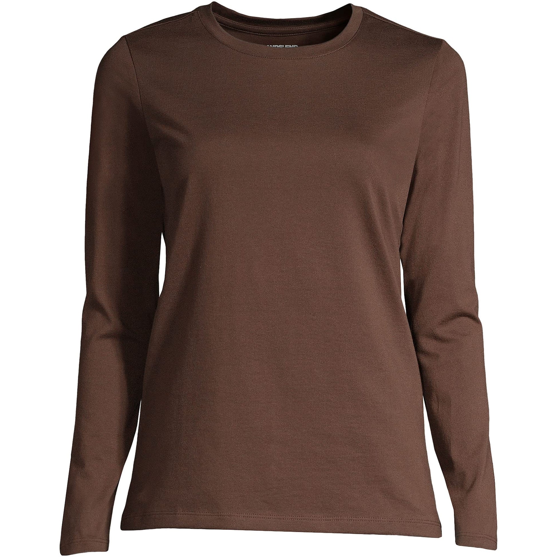 Lands' End Womens Long Sleeve Relaxed Supima Cotton Crew Neck T Shirt Rich Coffee Tall Medium