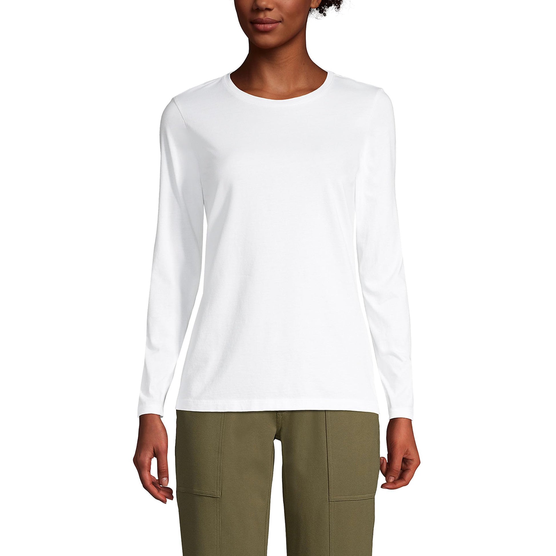 Lands' End Womens Long Sleeve Relaxed Supima Cotton Crew Neck T Shirt White Tall Small