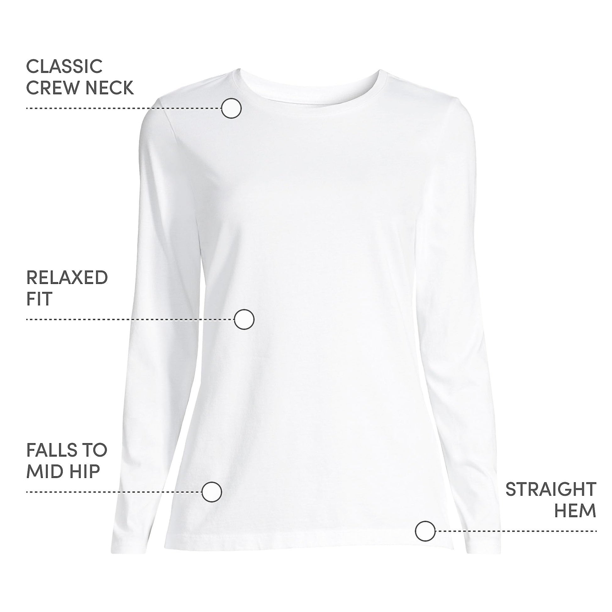 Lands' End Womens Long Sleeve Relaxed Supima Cotton Crew Neck T Shirt White Tall X-Large