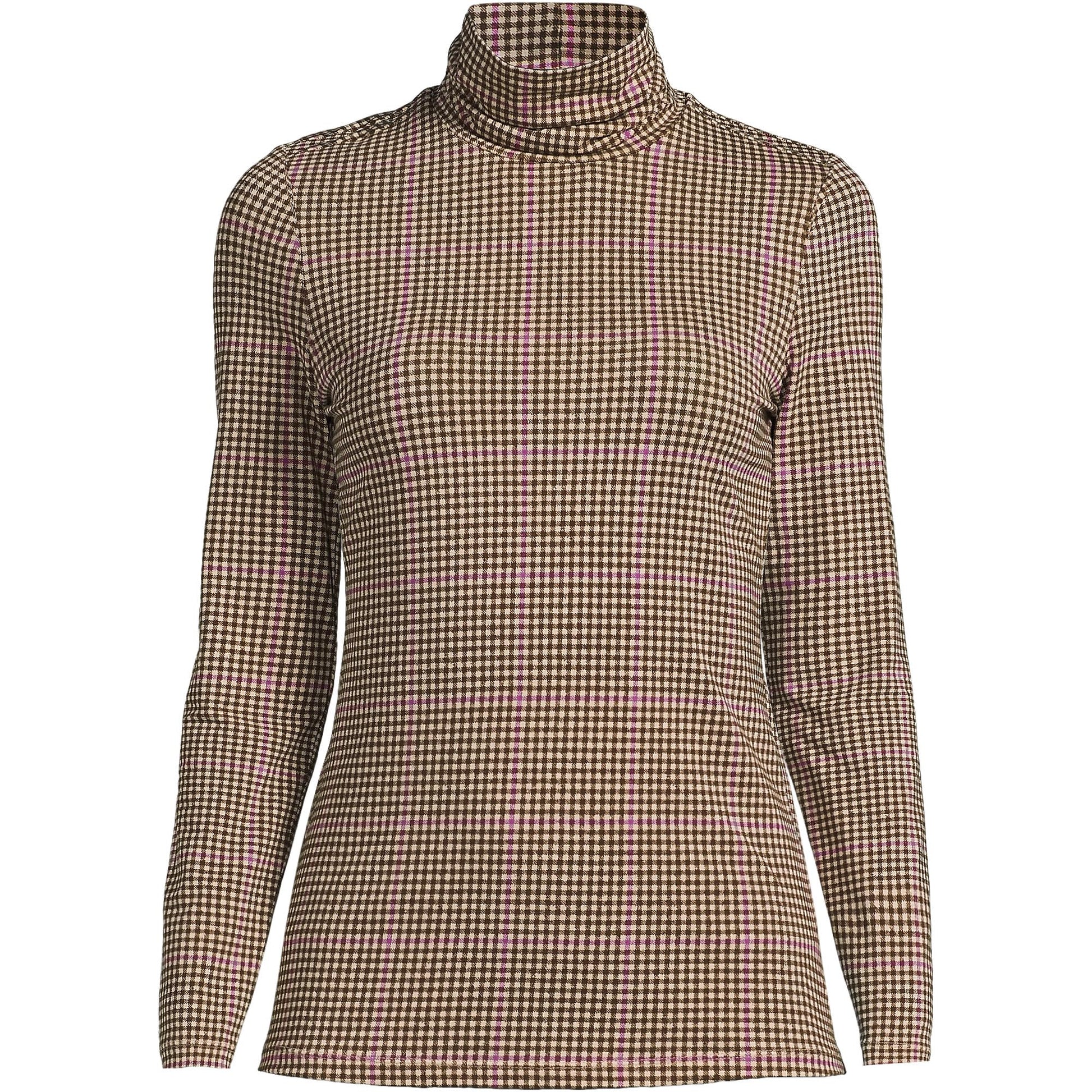 Lands' End Womens Long Sleeve Shaped LWCM Turtleneck Champagne/Brown Plaid Tall Small