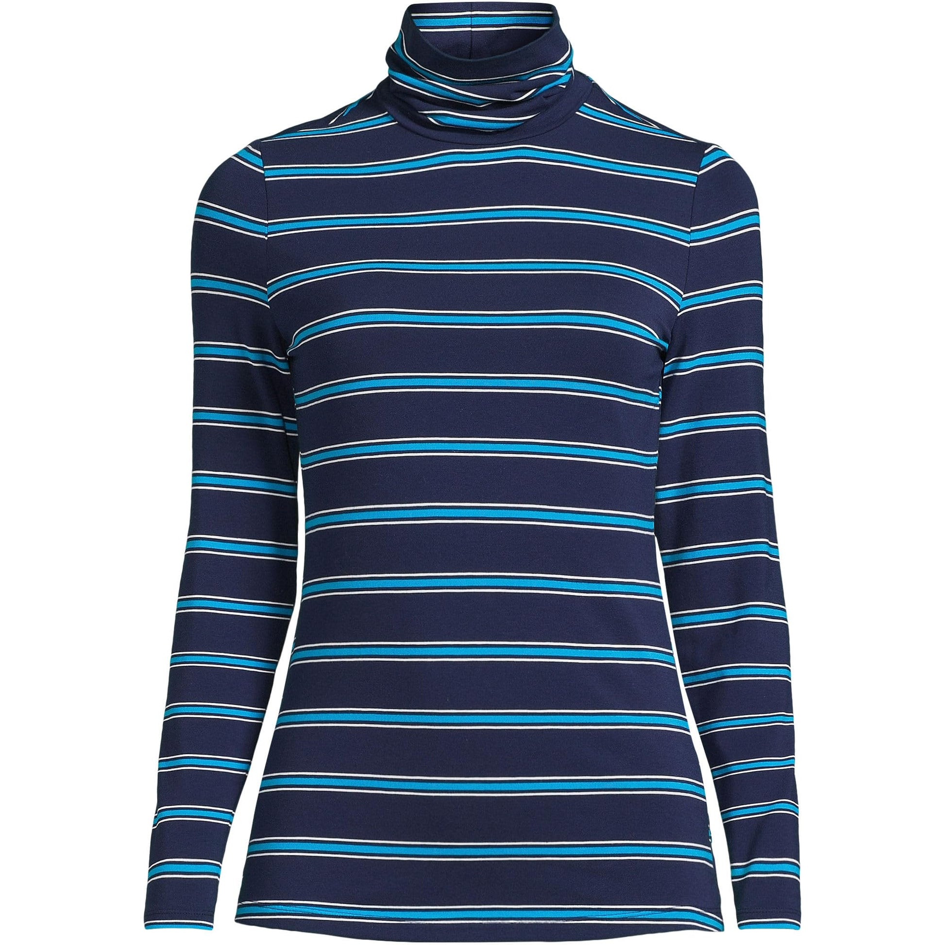 Lands' End Womens Long Sleeve Shaped LWCM Turtleneck Deep Sea/Cyan Stripe Tall Large