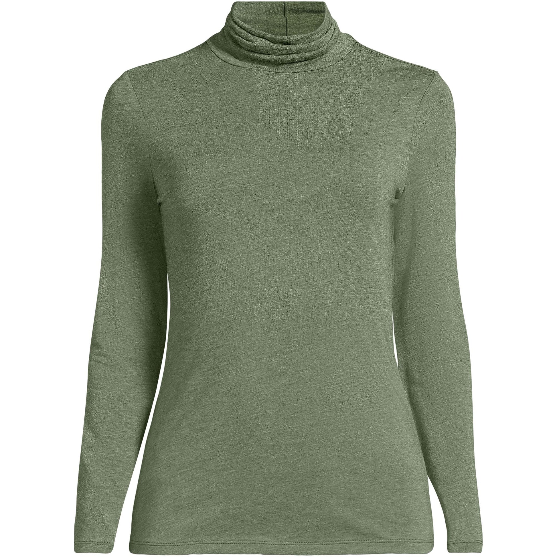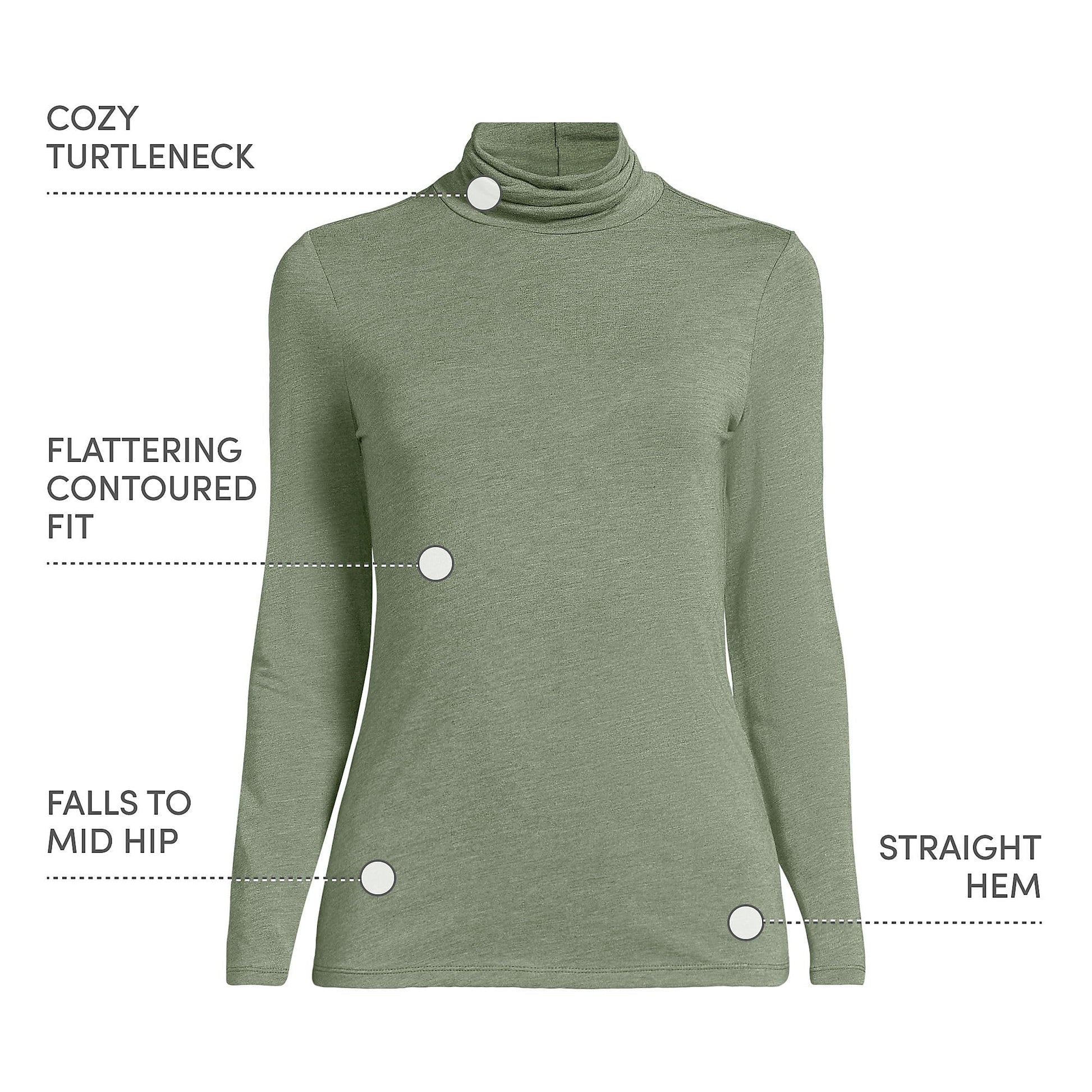 Lands' End Womens Long Sleeve Shaped LWCM Turtleneck Estate Green Heather Tall Medium