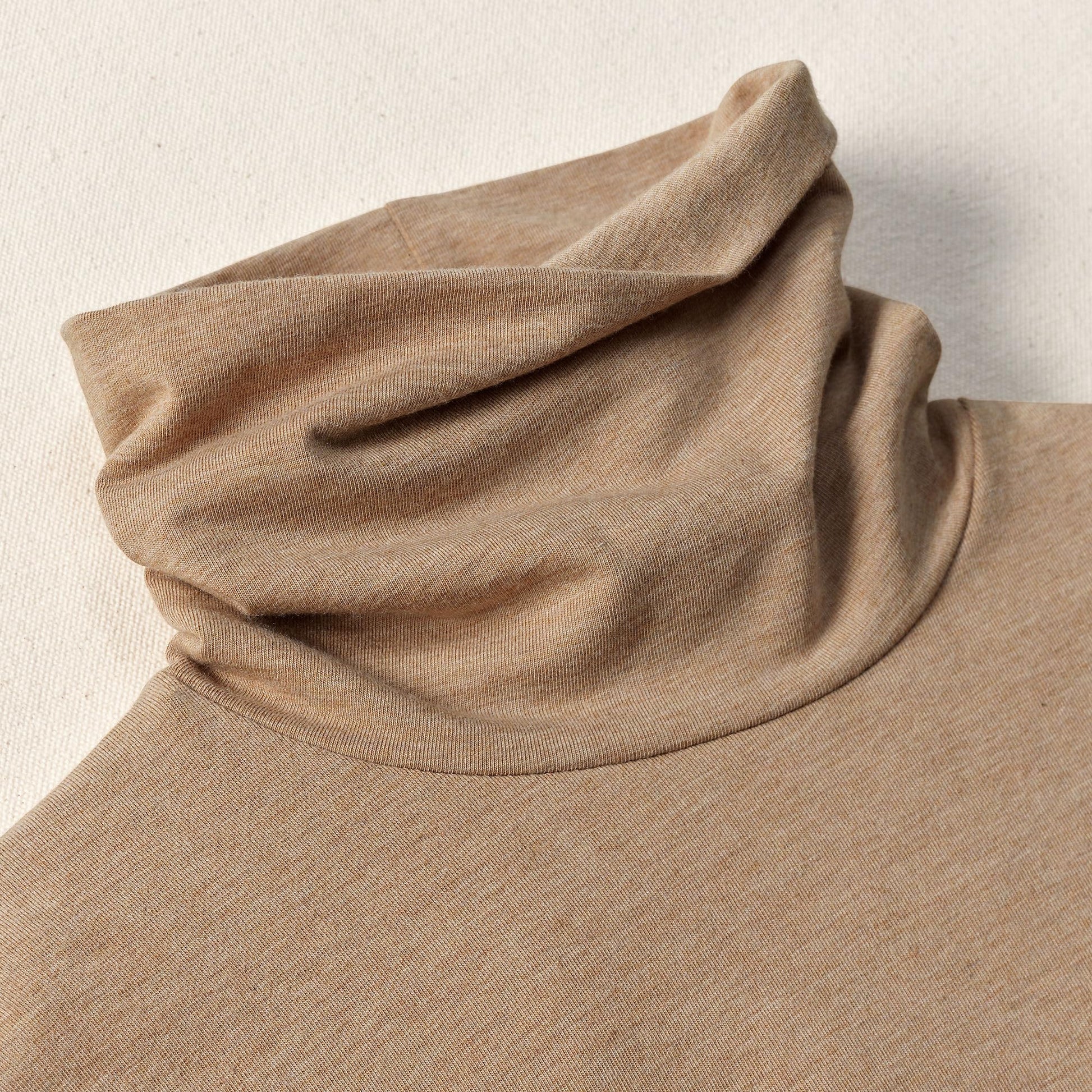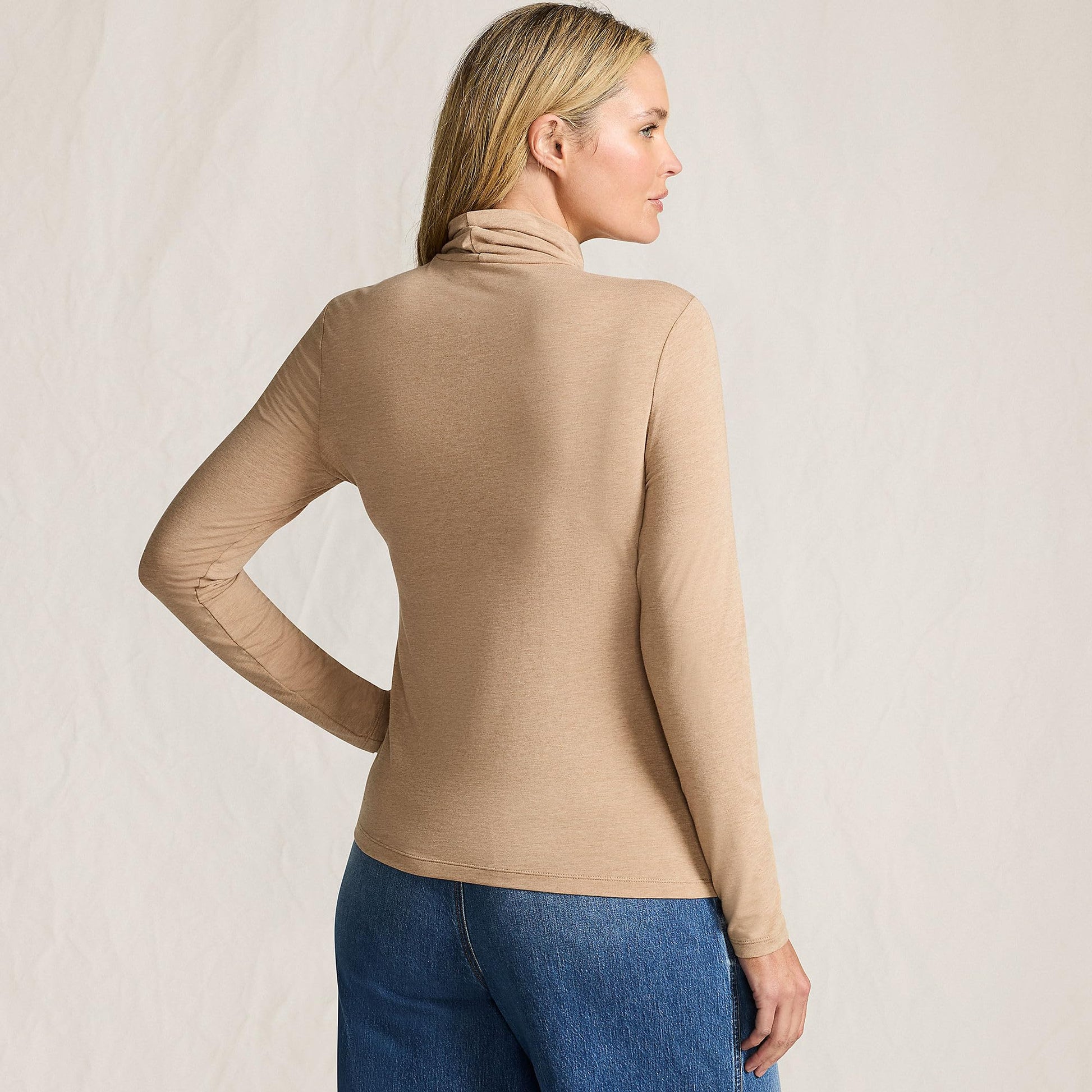 Lands' End Womens Long Sleeve Shaped LWCM Turtleneck Light Toffee Heather Tall X-Large