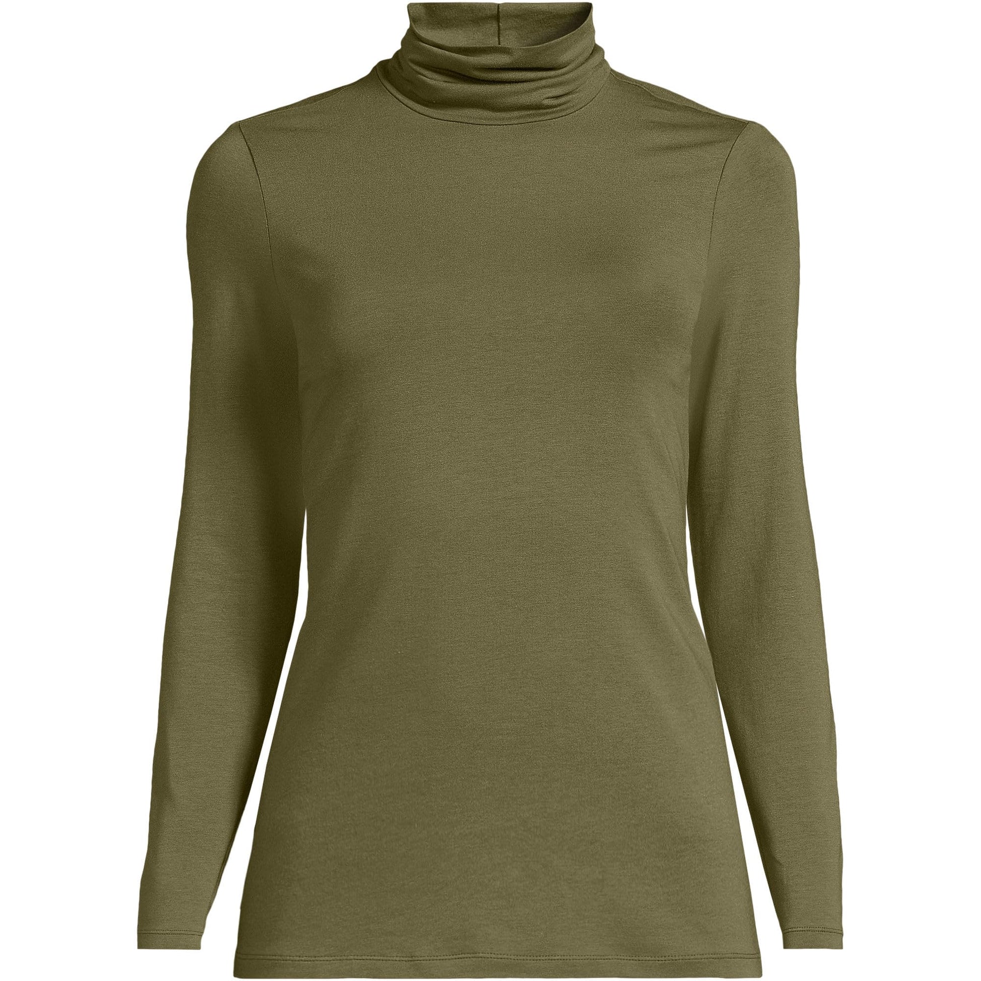 Lands' End Womens Long Sleeve Shaped LWCM Turtleneck Olive Drab Tall Small