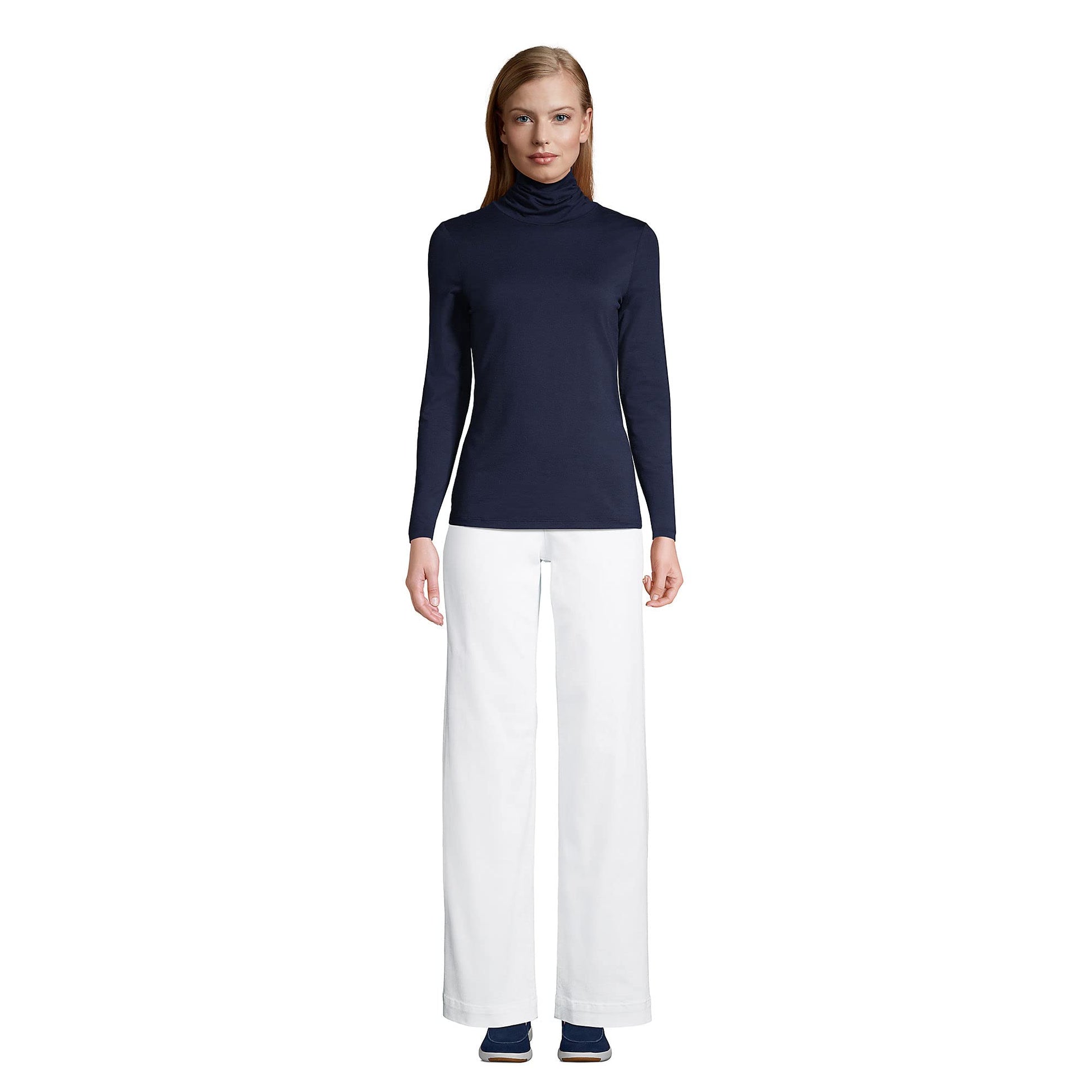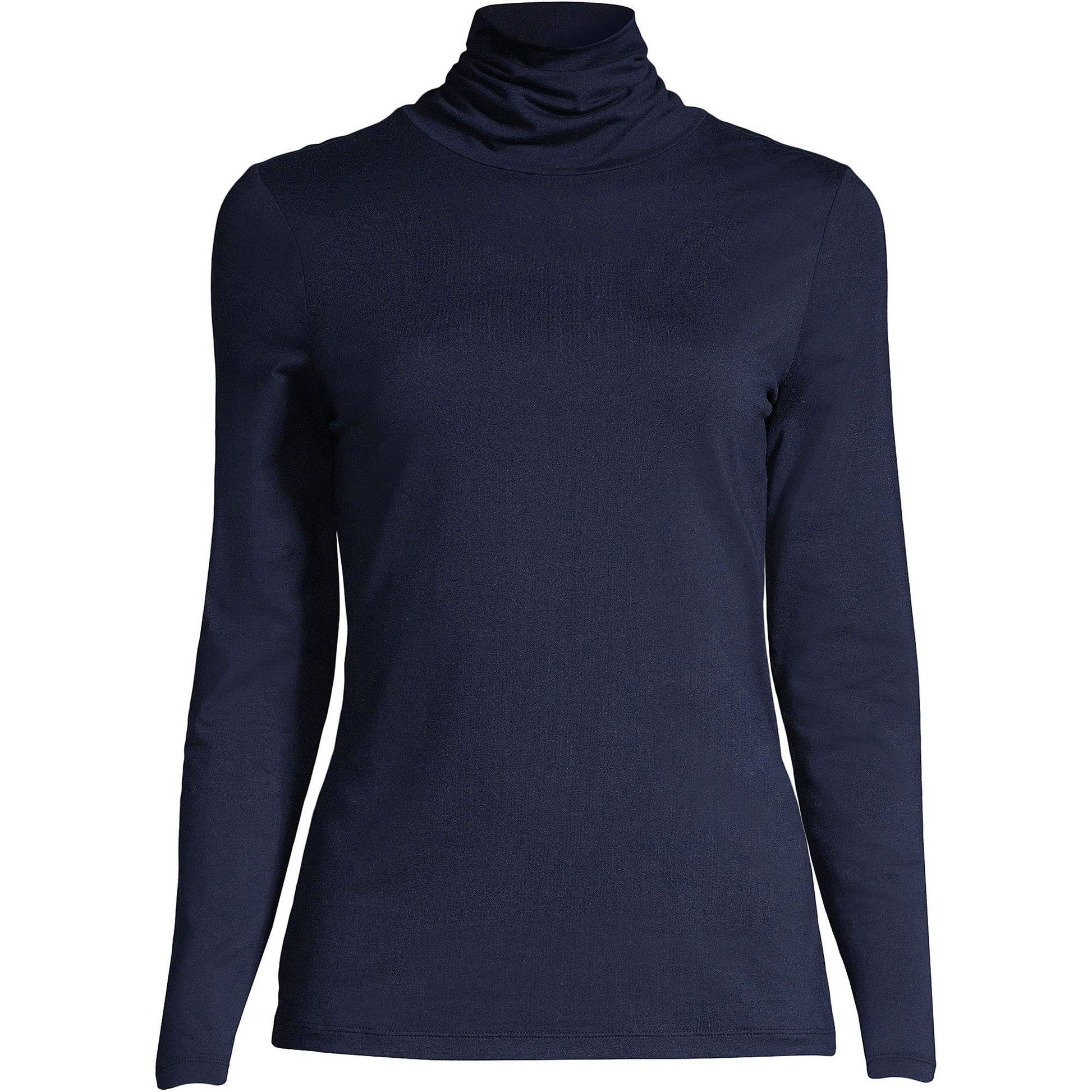 Lands' End Womens Long Sleeve Shaped LWCM Turtleneck Radiant Navy Tall X-Large