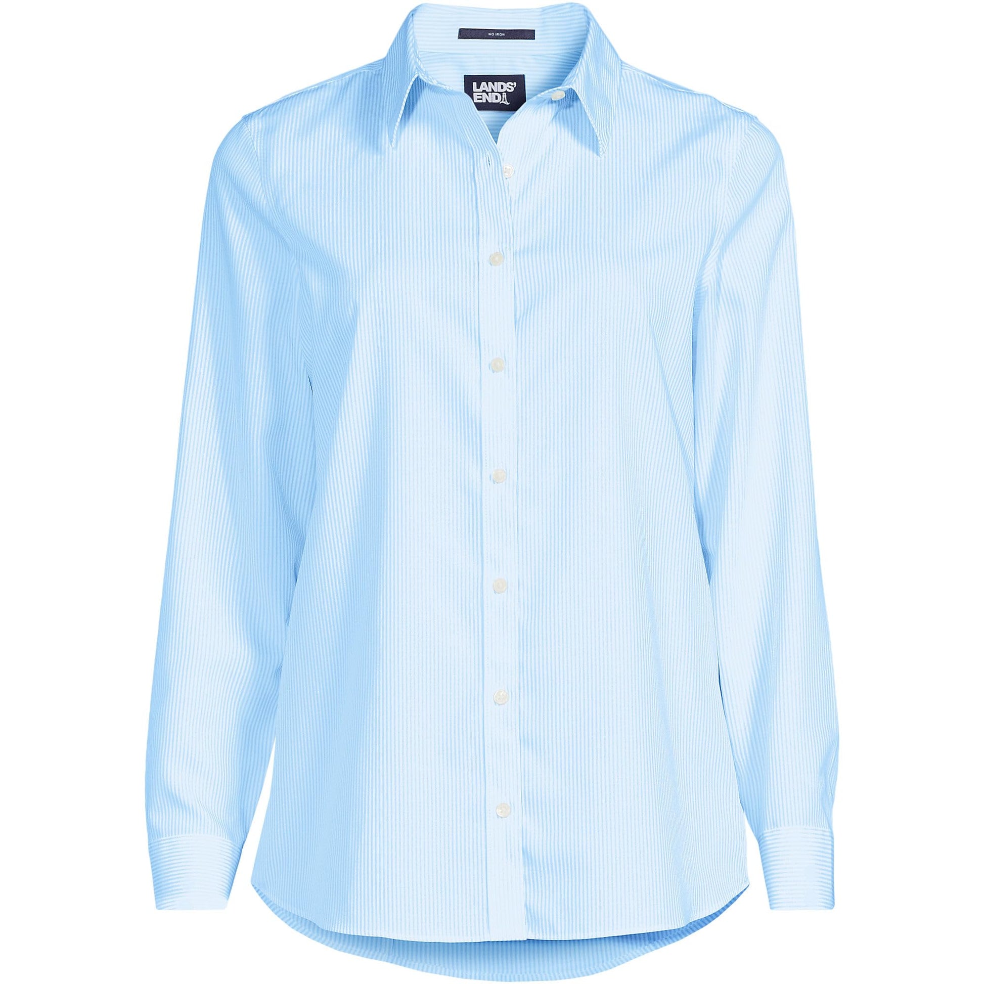 Lands' End Womens LS No Iron Button Front Shirt Bermuda Blue Mini Stripe Tall 6