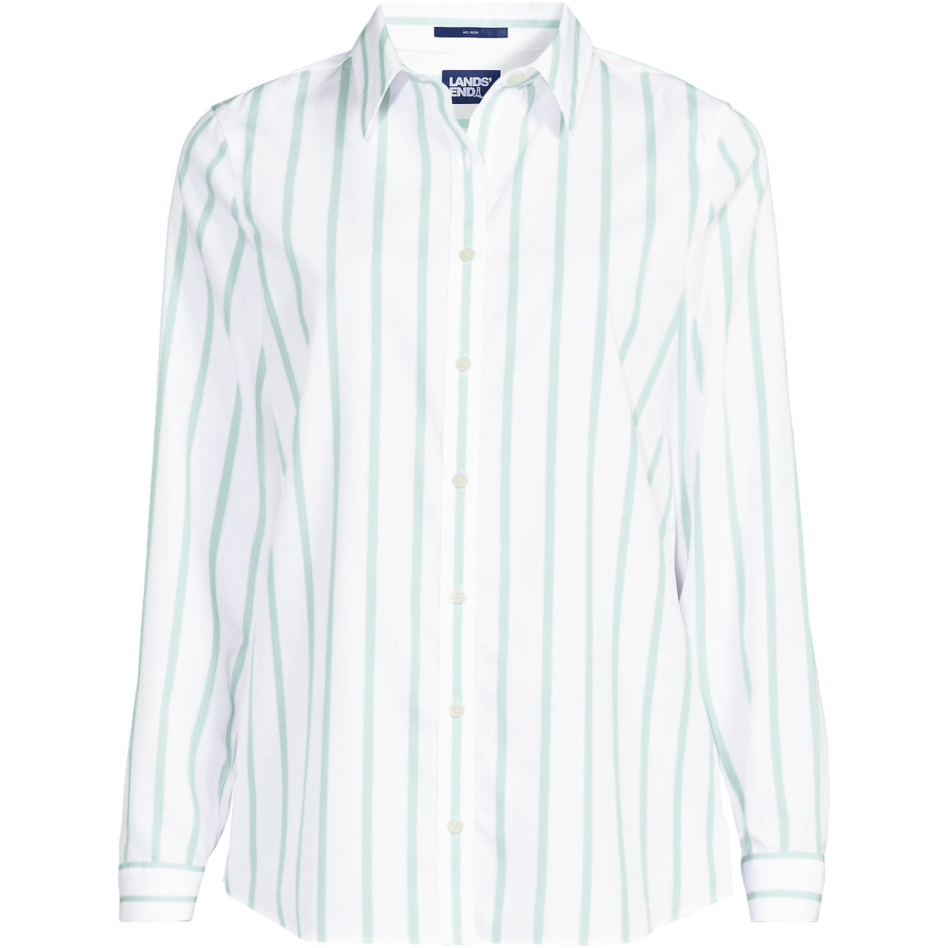 Lands' End Womens LS No Iron Button Front Shirt White/Aqua Classic Stripe Tall 6