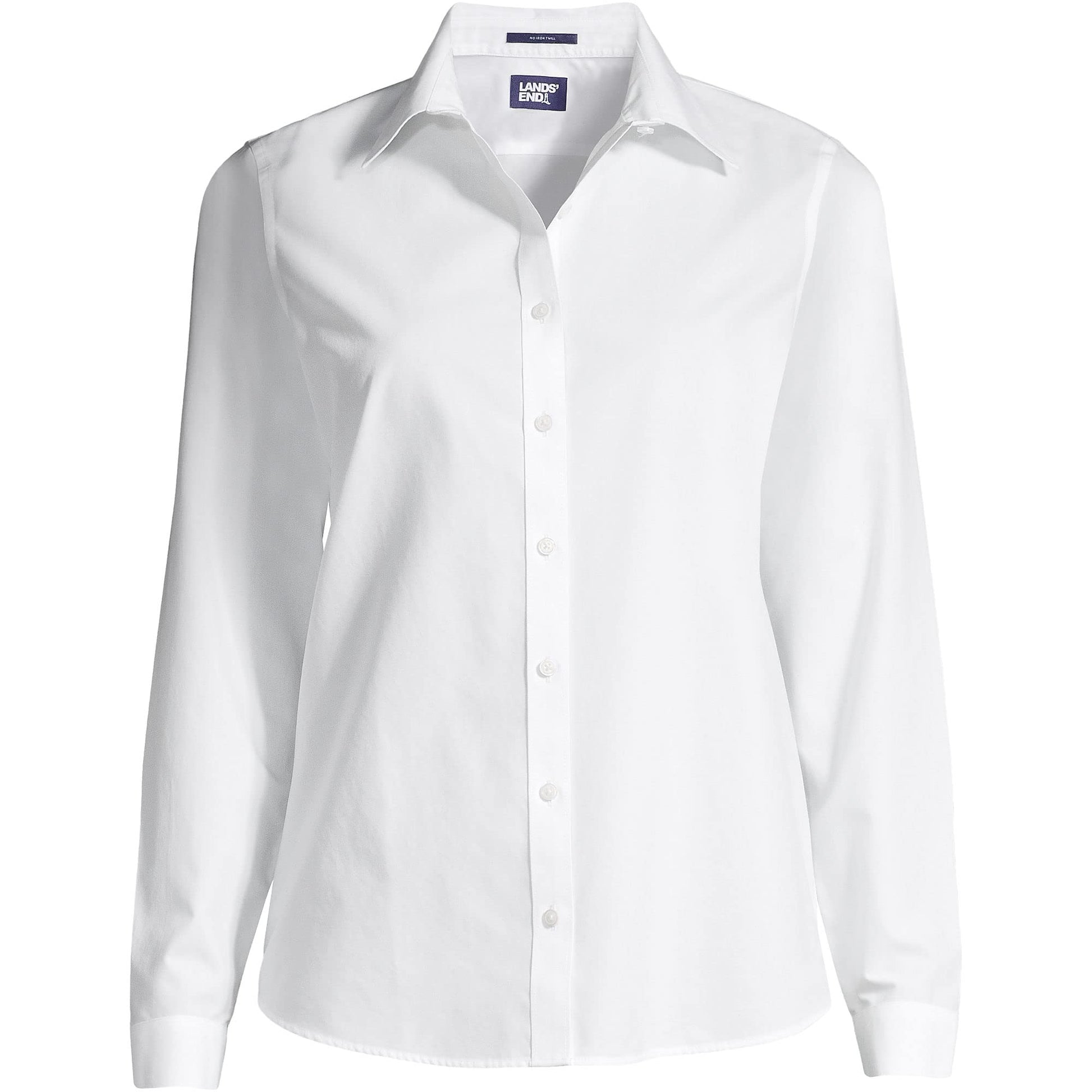 Lands' End Womens LS No Iron Button Front Shirt White Tall 12