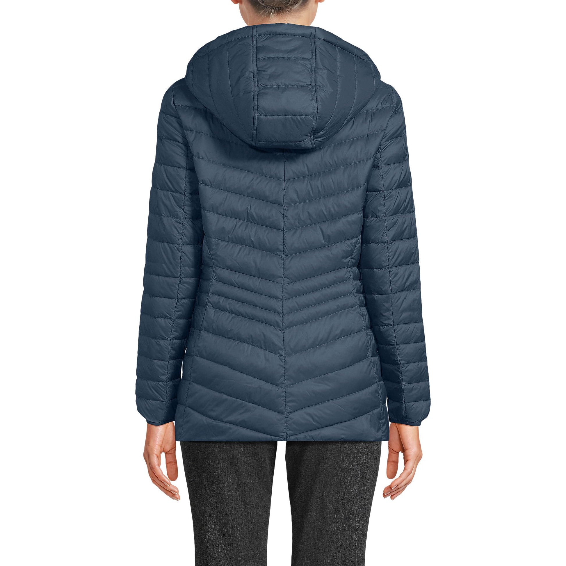 Lands' End Womens Packable Chevron Hooded Long Wanderweight Down Jacket Vintage Blue Tall Medium
