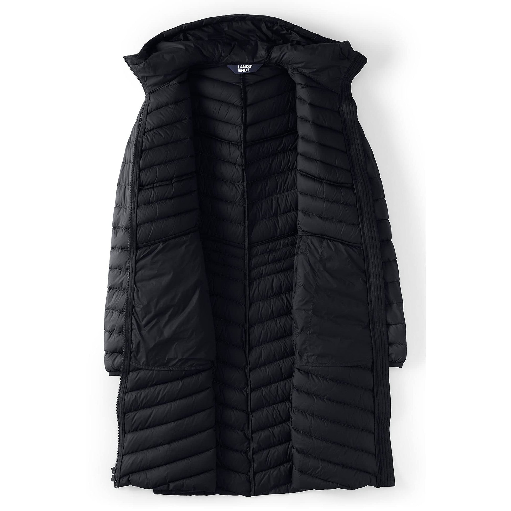 Lands' End Womens Packable Chevron Wanderweight Down Coat Black Tall X-Large