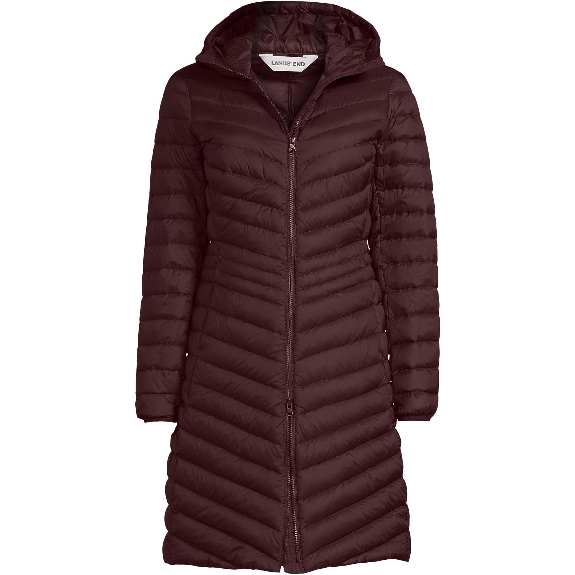 Lands' End Womens Packable Chevron Wanderweight Down Coat Lush Burgundy Tall Small