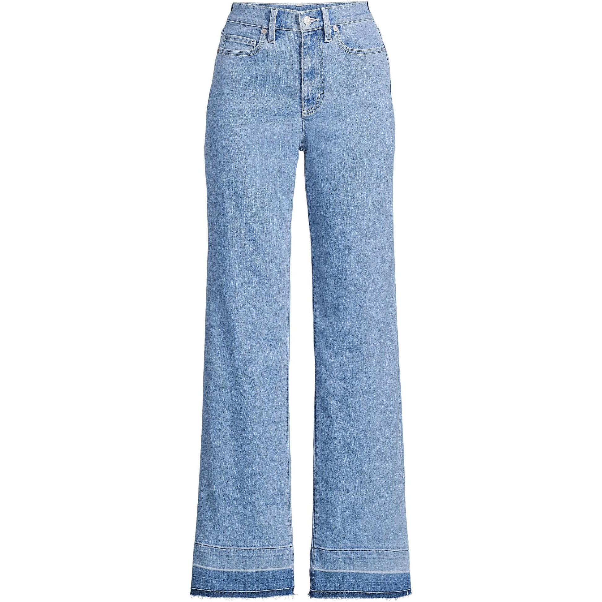 Lands' End Womens Recover HR Wide Leg Blue Jeans Hutton Blue Wash Released Hem Regular 14 32