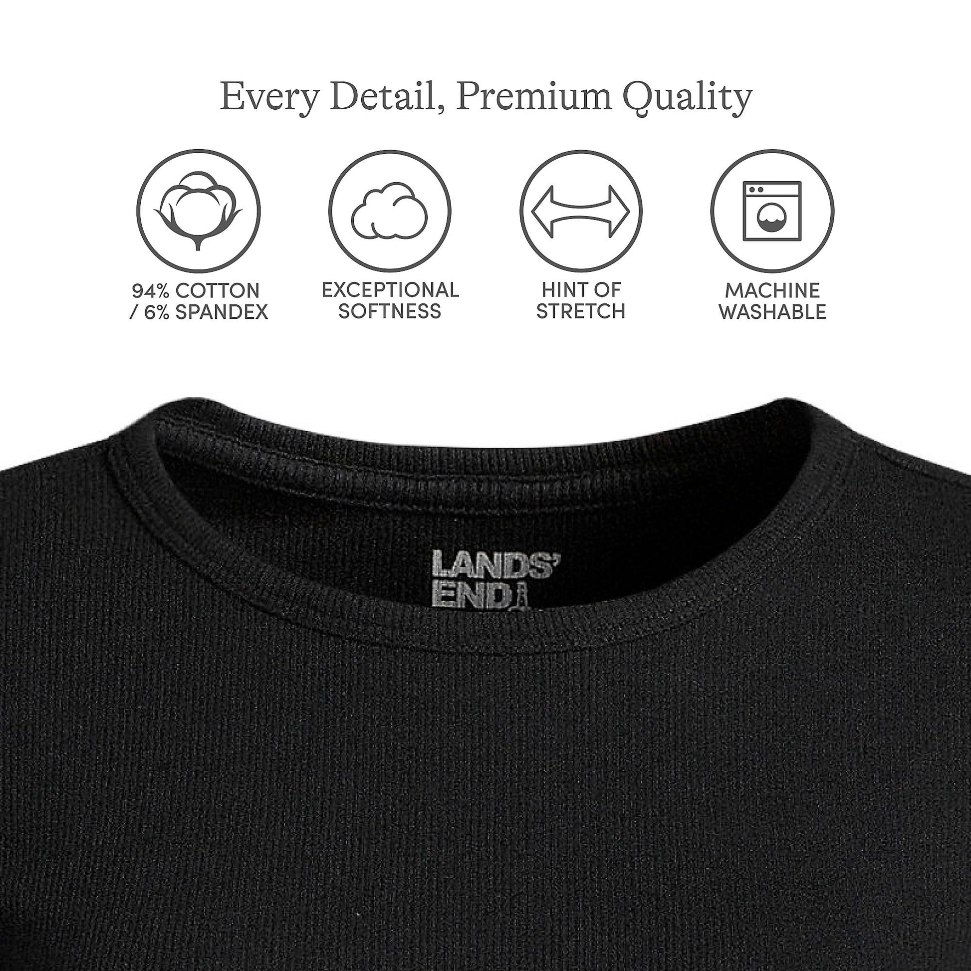 Lands' End Womens Short Sleeve Micro Rib Crew Black Tall Large