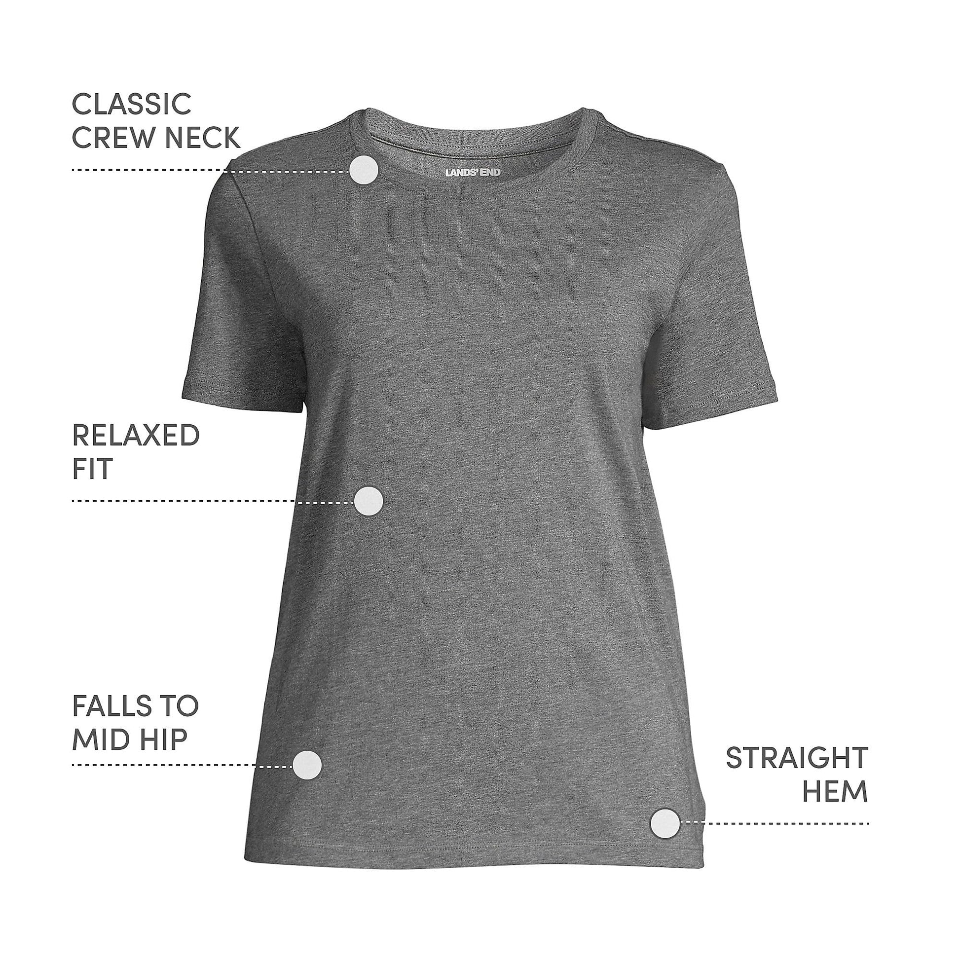 Lands' End Womens Short Sleeve Relaxed Supima Cotton Crew Neck T Shirt Charcoal Heather Tall Large