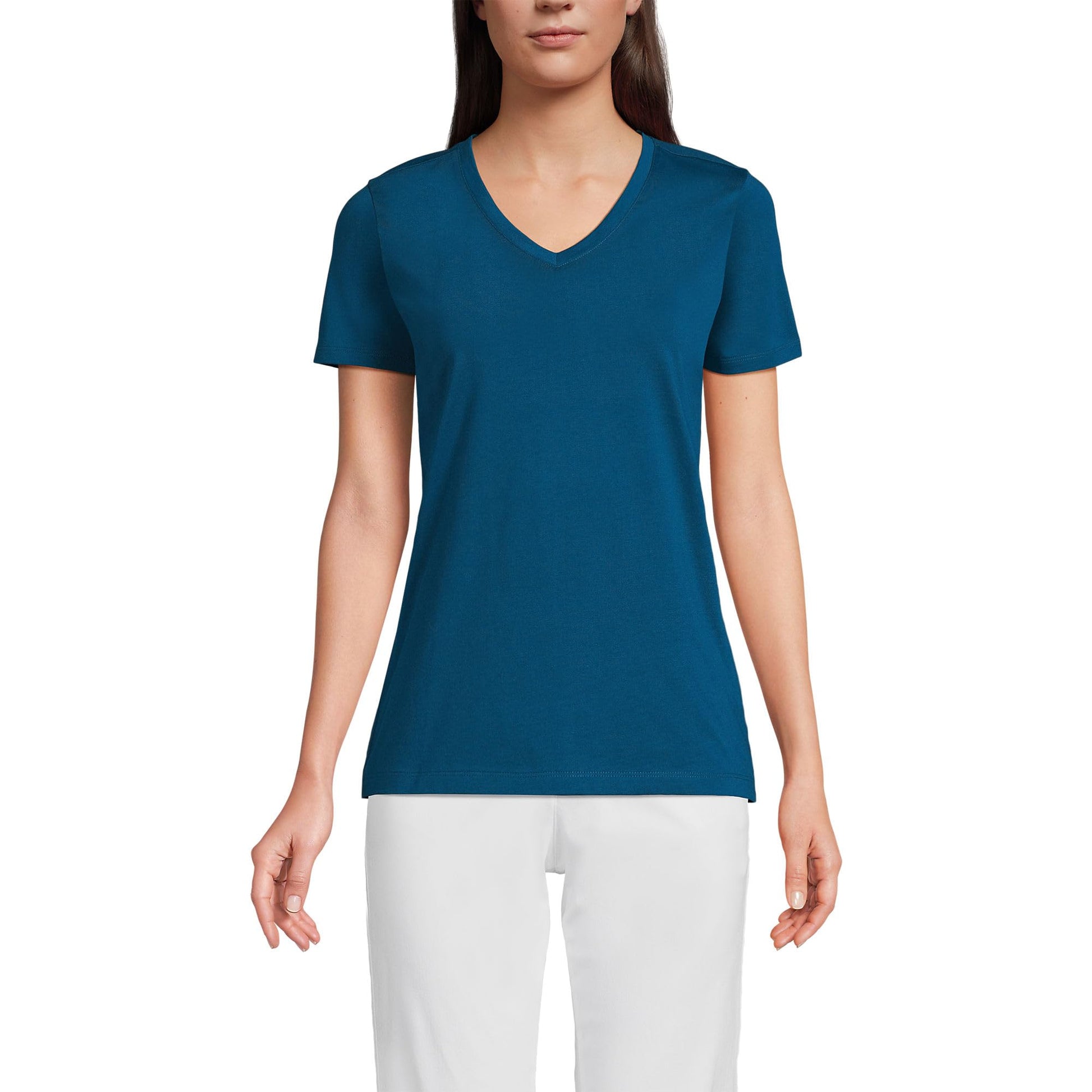 Lands' End Womens SS Relaxed Supima V Neck T Shirt Baltic Teal Tall Small