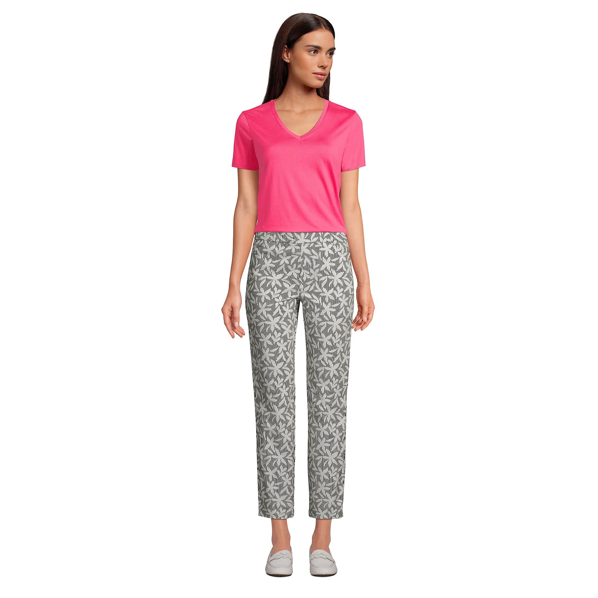 Lands' End Womens SS Relaxed Supima V Neck T Shirt Hot Pink Tall X-Large