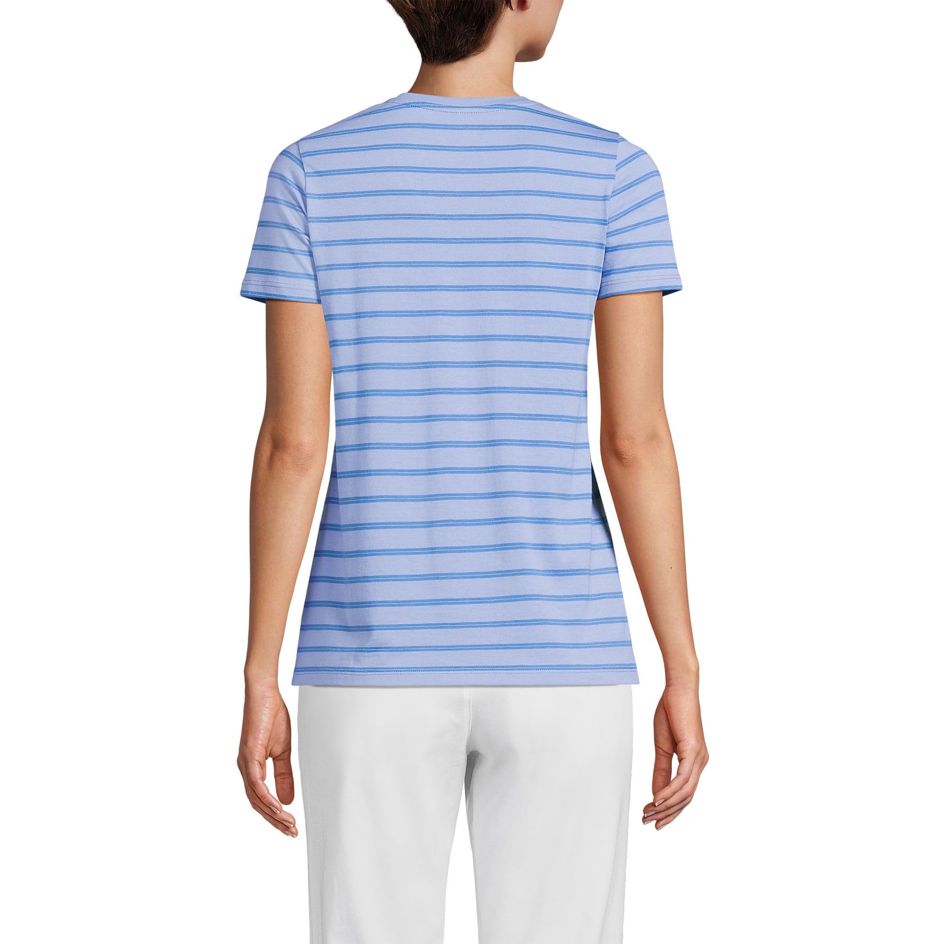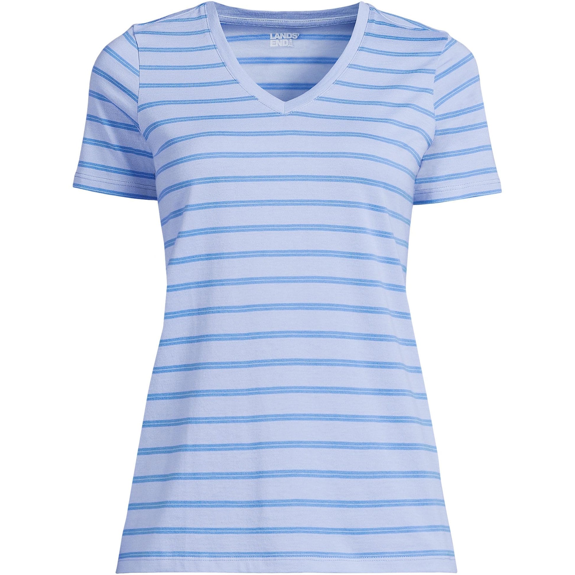 Lands' End Womens SS Relaxed Supima V Neck T Shirt Light Cornflower Dual Stripe Tall X-Large
