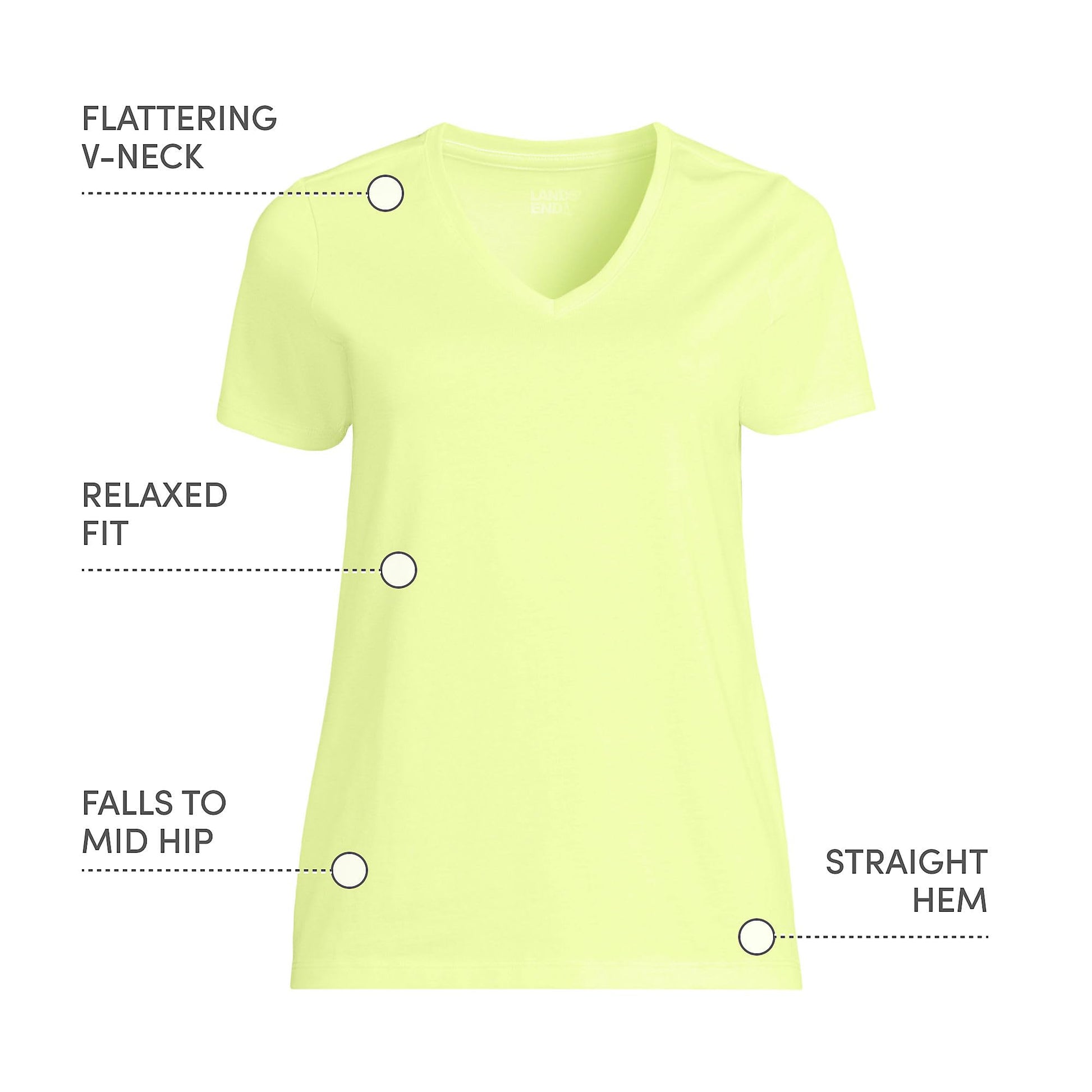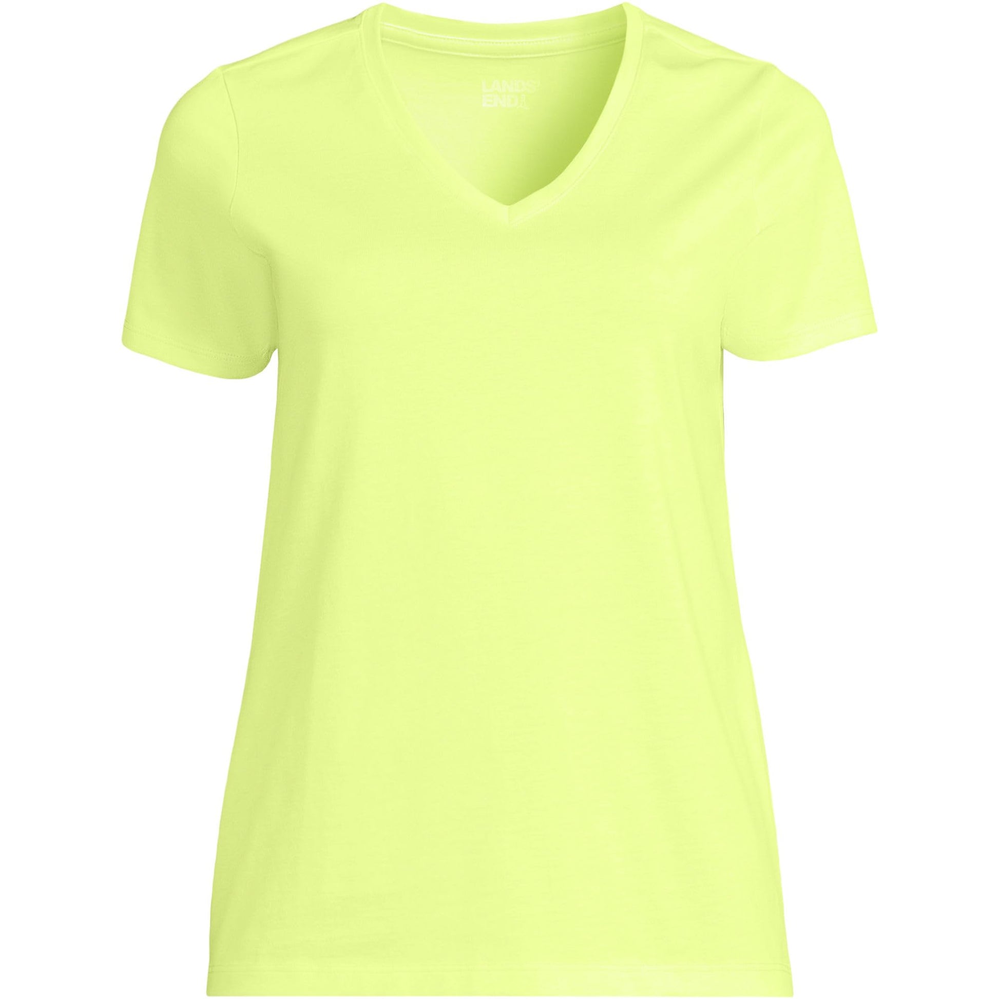 Lands' End Womens SS Relaxed Supima V Neck T Shirt Soft Limoncello Yellow Tall Medium