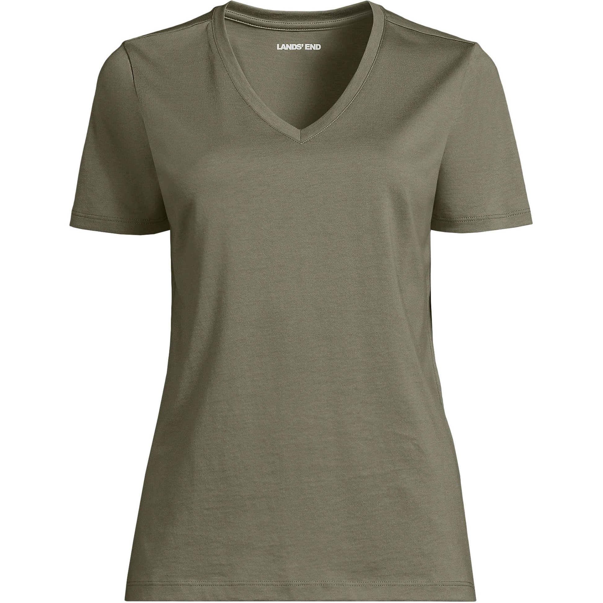 Lands' End Womens SS Relaxed Supima V Neck T Shirt Soft Olive Drab Tall Medium