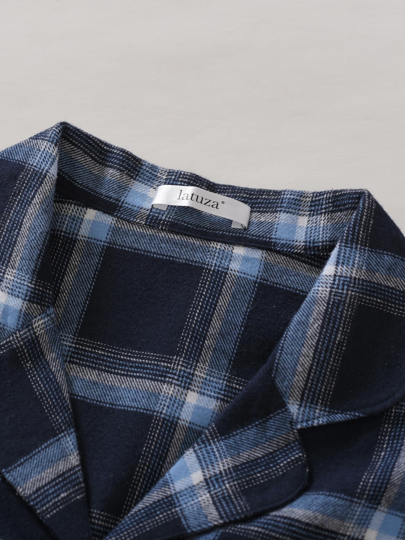 Latuza Women's Tall Flannel Pajama Set Extra Long Button Up Top Pants Pj Set 2X Navy Blue